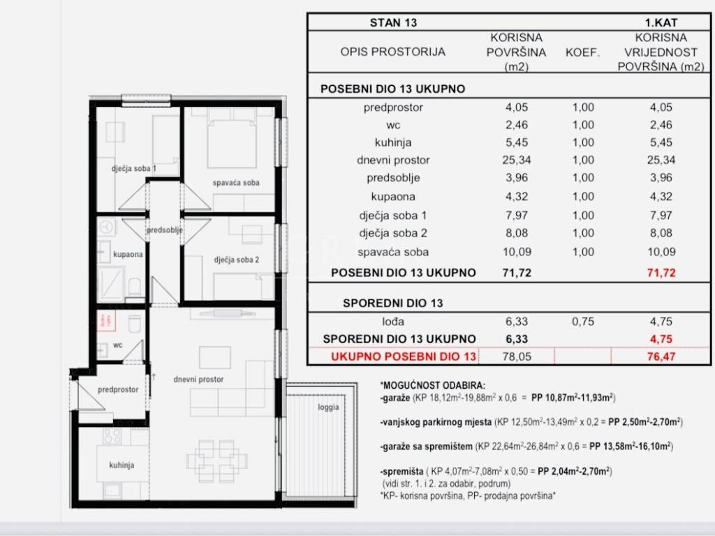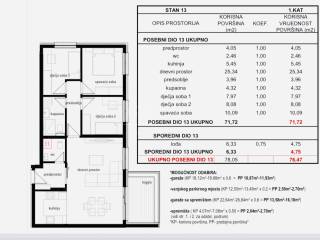 Opis stana (neto 76,47m2,/ 78,05m2 bruto) 1 kat