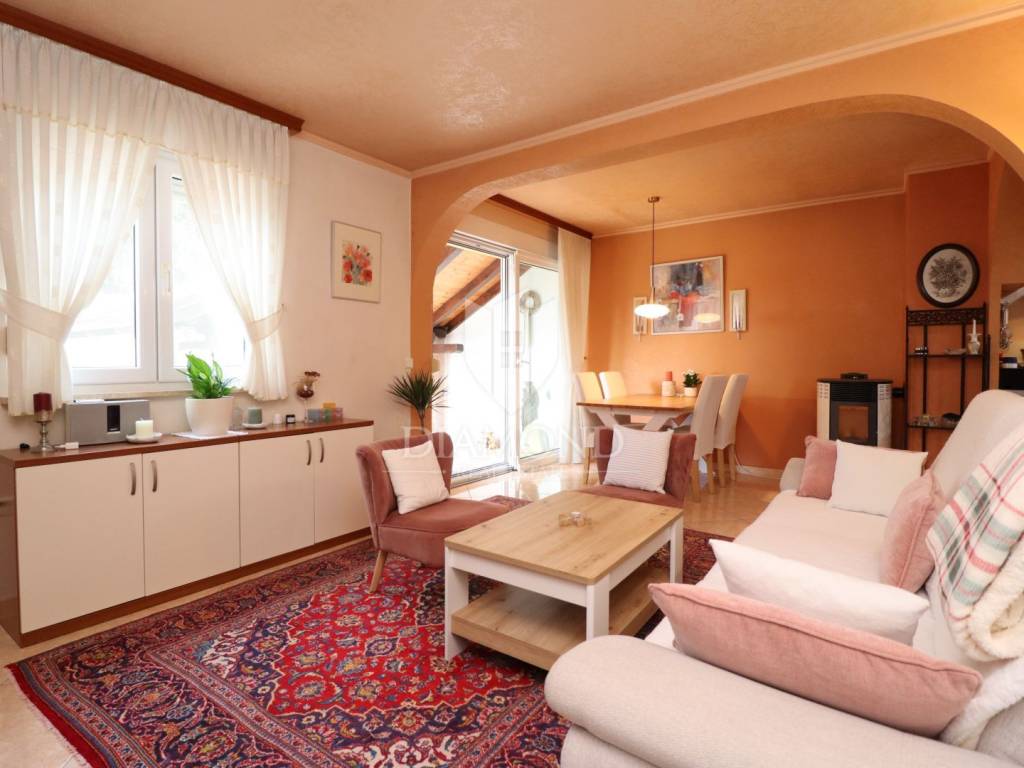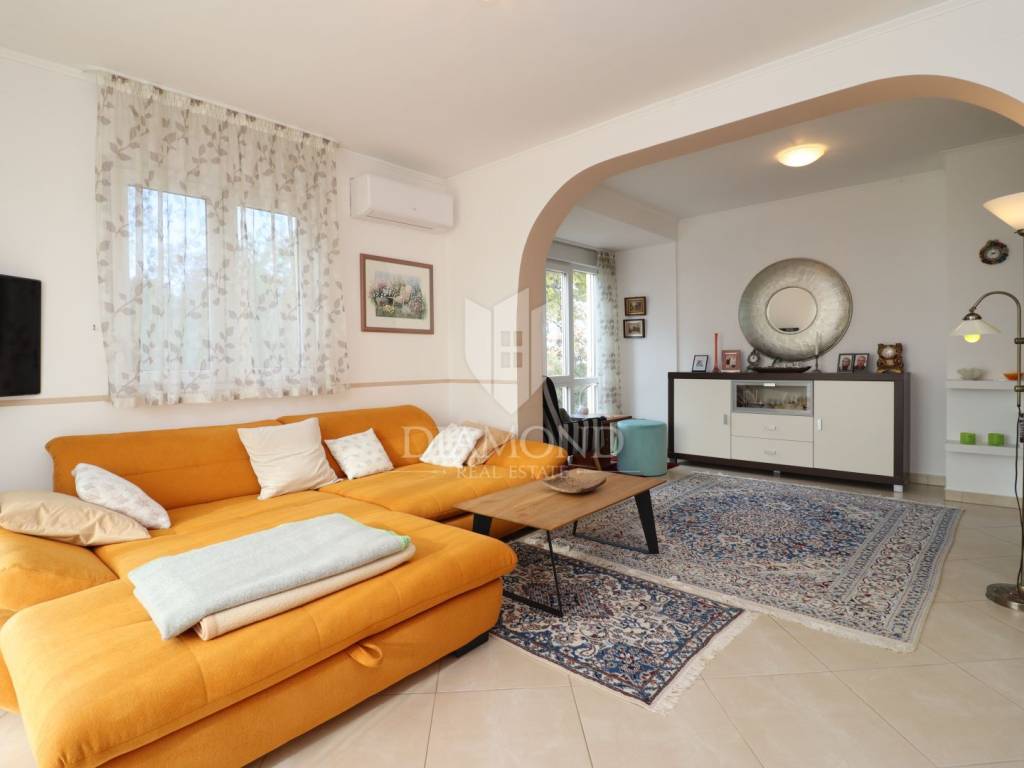 In an attractive location just 3 km from the center of Poreč and 2 km from the beach, in a quiet village, there is this beautiful and well-maintained house that offers the perfect combination of privacy and functionality. On a landscaped plot of approximately 200 m² is a semi-detached house with a total living area of 105 m², designed as two separate residential units arranged on the ground floor and first floor. The outdoor area offers complete privacy, is ideal for relaxing and socializing, and is adorned with a covered terrace, barbecue and a rich, well-kept garden with Mediterranean plants. The interior is thoughtfully organized to achieve maximum comfort. – The ground floor includes a living room connected to the kitchen and dining room, one bedroom, bathroom, hallway with storage room and a large covered terrace. – The first floor offers a second apartment with one bedroom, a living room with kitchen and dining room, bathroom and a spacious terrace with a beautiful sea view. The house is air-conditioned, and the heating is organized by a pellet stove, which allows for a comfortable stay throughout the year. It is sold fully furnished and ready to move in without additional investments. The proximity of all amenities and quick access to the sea make this property ideal for both family life and investment in tourism. This property offers peace, privacy and a functional layout, with close proximity to the city and beaches - the perfect combination for quality living or tourist rental. Don't miss the opportunity! Become the owner of this attractive house in the Poreč area - contact us and book your viewing appointment today!