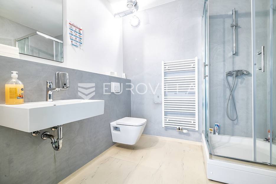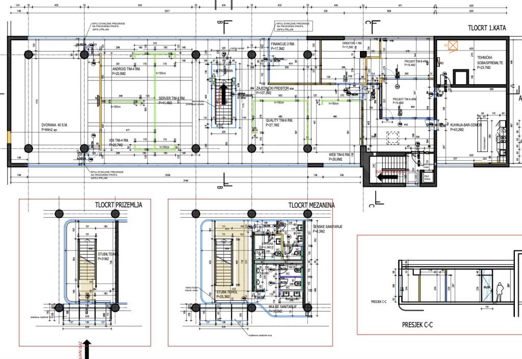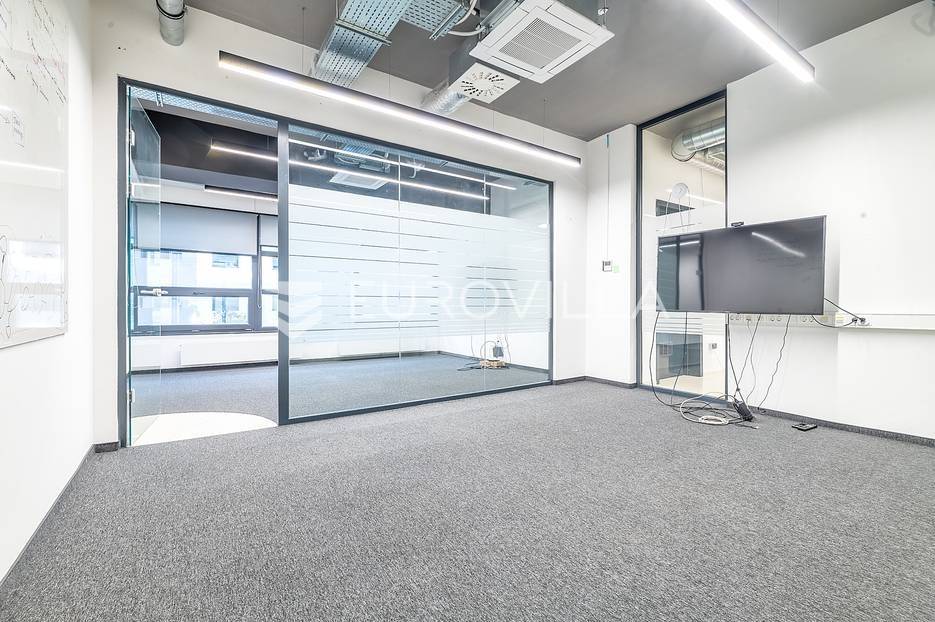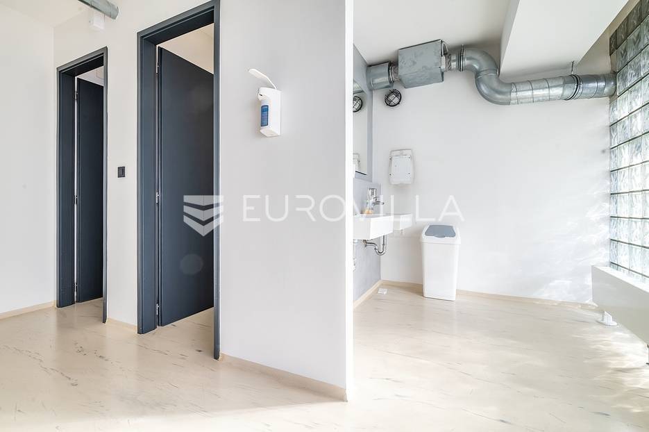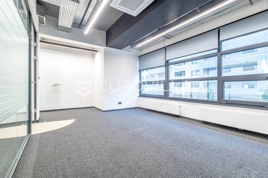 Zagreb, Trešnjevka sjever, ekskluzivan poslovni prostor ukupne površine 580 m2 unutar poslovnog kompleksa, proteže se kroz 3 etaže. Prizemlje se sastoji od ulaznog prostora, mezanin od muškog i ženskog sanitarnog čvora, dok se na 1. katu nalaze prostrane uredske prostorije, kuhinja s blagovaonicom, te server soba. Uredske prostorije su koncepirane kao open space s više manjih odvojenih ureda. Mogućnost tlocrtne prilagodbe prostora.Cijena zakupa 15 €/m2+režije+pdv.Zajednički troškovi održavanja 3 €/m2+pdv.Cijena zakupa vanjskog parkirnog mjesta 100 €+pdv, garažnog parkirnog mjesta 150€+pdv.Nalazi se na vrlo frekventnoj lokaciji šireg centra grada, u neposrednoj blizini javnog prijevoza i javnog sadržaja. Parkiranje je moguće na javnom parkingu (2. zona) u krugu kompleksa, te postoji mogućnost zakupa vanjskih i garažnih parkirnih mjesta u dvorištu zgrade.Za sva daljna pitanja stojim Vam na raspolaganju.
