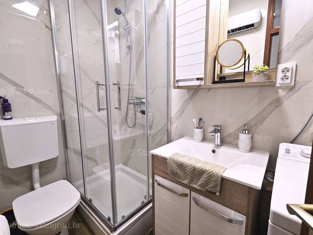 From the diverse offer of all types of real estate at the Stan Grad Immobilien agency, an affordable studio apartment on one of the most sought-after Adriatic coastal areas, the island of Krk, stands out. The offered property is in an urban and well-developed location, close to the sea, the center and all the necessary amenities in the town of Malinska. In nature, this is a rarely available smaller studio apartment with a solid layout. In a building of very good construction, the studio apartment is located on the 2nd floor. The total area of this property is 20 m2. This area includes the living room and kitchen, a bathroom and a small balcony. The interior of the property was recently renovated and the space is completely furnished with new furniture and appliances. It is important to say that the owner of the studio apartment can also use the common part of the garden of the property without hindrance. The area of the property's common yard gives the possibility of comfortable parking for one car. In addition to the earlier features, the building is perfectly oriented, so that the studio offers a wonderful view of the sea and the coast. This real estate is the property of a natural person, so the buyer is obliged to pay sales tax in the amount of 3% when transferring its ownership to his name. The seller of the studio apartment guarantees proper ownership documentation and a quick transfer of ownership of the property. You are warmly welcome to our golden island of Krk and to our Kvarner branch. The sales team of the Stan Grad Immobilien agency will be happy to assist the buyer of this property in transferring ownership of the property to the land register and transferring bills for electricity, water and garbage collection to their name.