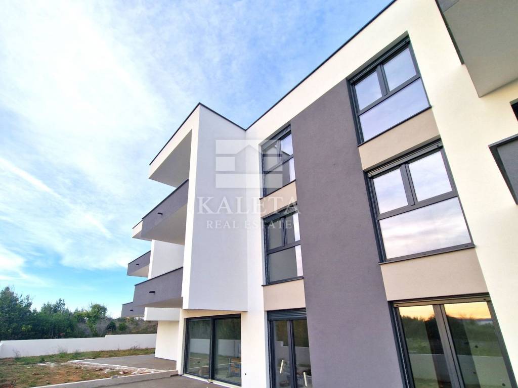 Only 300 m from the sea and the long beach on the sandy peninsula in Privlaka, surrounded by silence and olive groves, is this high-quality newly constructed building with an elevator and sea view.