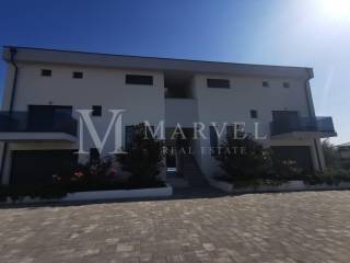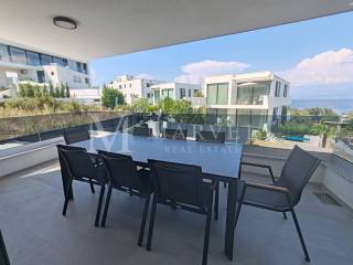 from € 885,000New build Apartments in Malinska-DubašnicaSemi-Detached House with Garden and Pool, Malinska, Krk Island – 122 m², 5 Minutes Walk to the Sea! For sale: semi-detached house in Malinska, Krk Island, with a total living area of 122 m² spread over ground floor and first floor. The ground floor includes: entrance, bathroom, bedroom, hallway, storage room, living room, kitchen with dining area and access to the terrace with garden and pool. Internal stairs lead to the first floor where there are three bedrooms, two bathrooms and a balcony. The house is fully furnished with high-quality, custom-made furniture. It comes with two covered pa