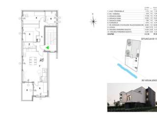 Prodaje se stan na prvom katu u budučoj stambenoj zgradi .Na lokaciji se grade dva dvojna objekta, svaki etažnosti - prizemlje, kat i uvučeni kat, od toga svaki sa tri stambene jedinice odnosno ukupno 6 stambenih jedinica na lokaciji.Objekti su projektirani kao niskoenergetski, te će se graditi i opremati vrhunskim i visokokvalitetnim materijalima i opremom. Energetski certifikat A.
