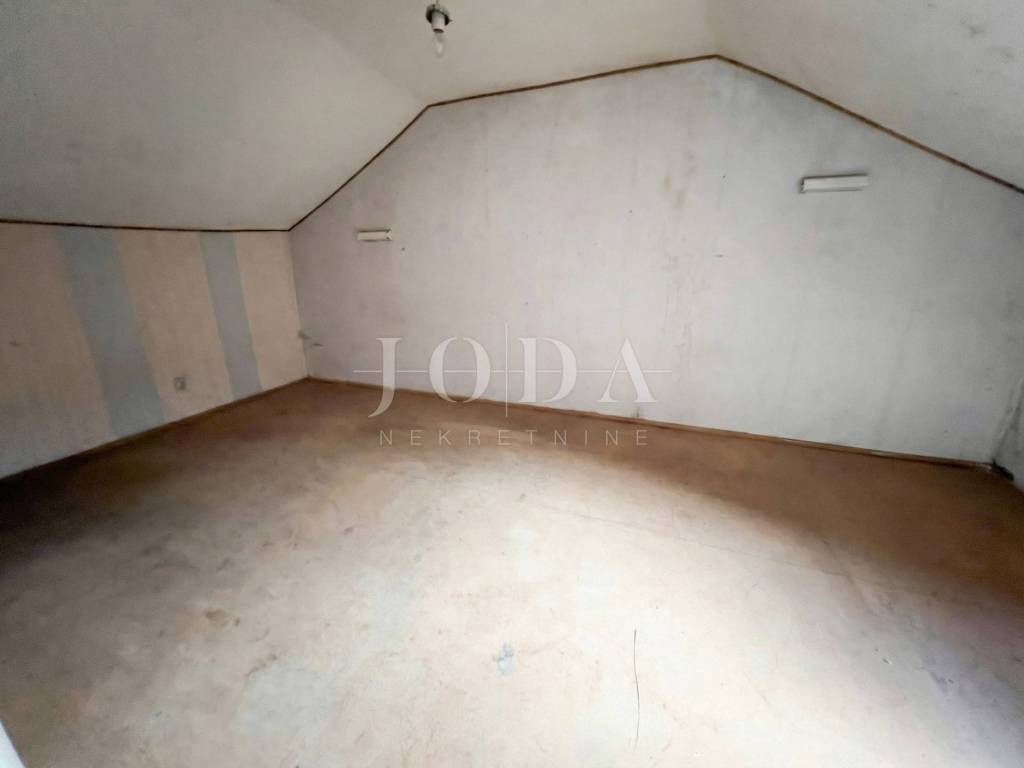 The apartment of 88 m2 consists of a kitchen, pantry, bathroom, hallway, two rooms with a balcony of 66 m2 to which belongs one room in the attic of 16 m2 and two storage rooms and a woodshed.