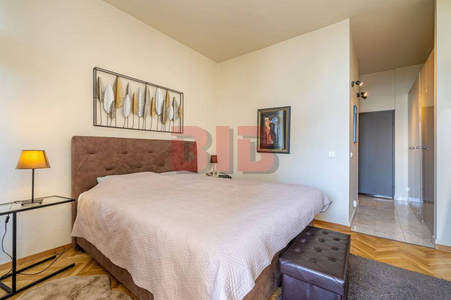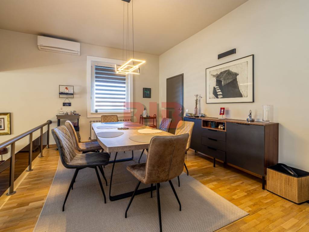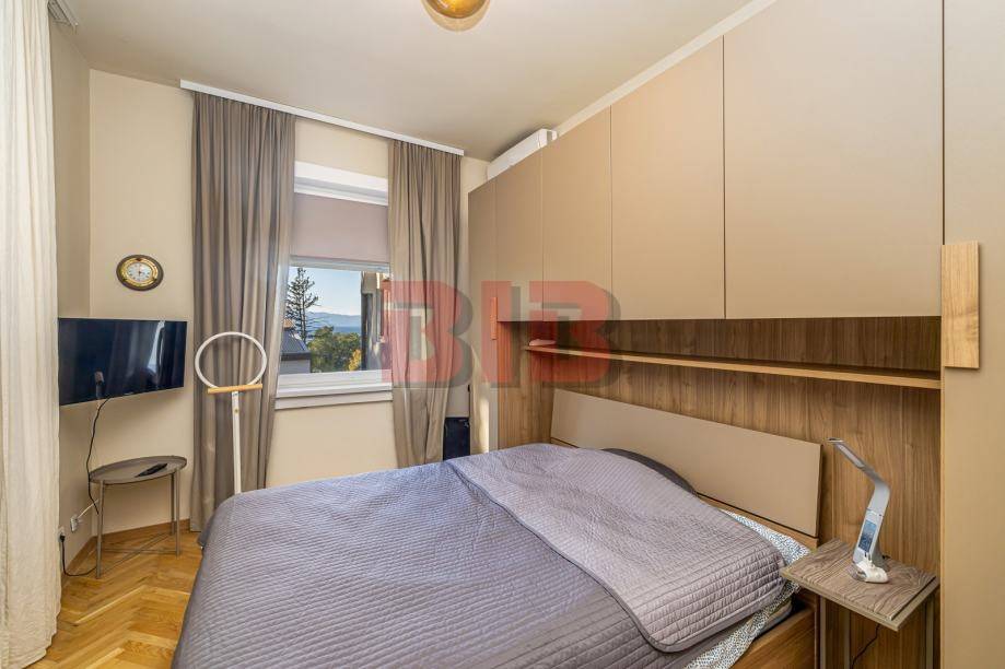 Raspored je vrlo moderan,veliki dnevni boravak sa kaminom i izlaskom na veliku lođu,dnevni dio odvojen od spavaćeg,sve u odličnom stanju,detaljno uređeno 2020 godine