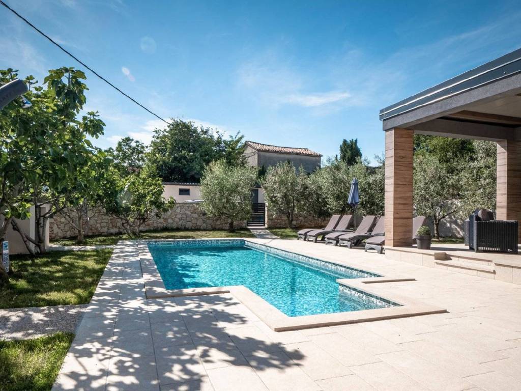 The house has a very nicely landscaped garden with an automatically irrigated lawn, a heated swimming pool of 30 sqm, which uses salt water with electrolysis, a sunbathing area, a covered terrace, fenced with a stone wall.