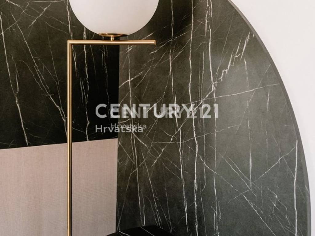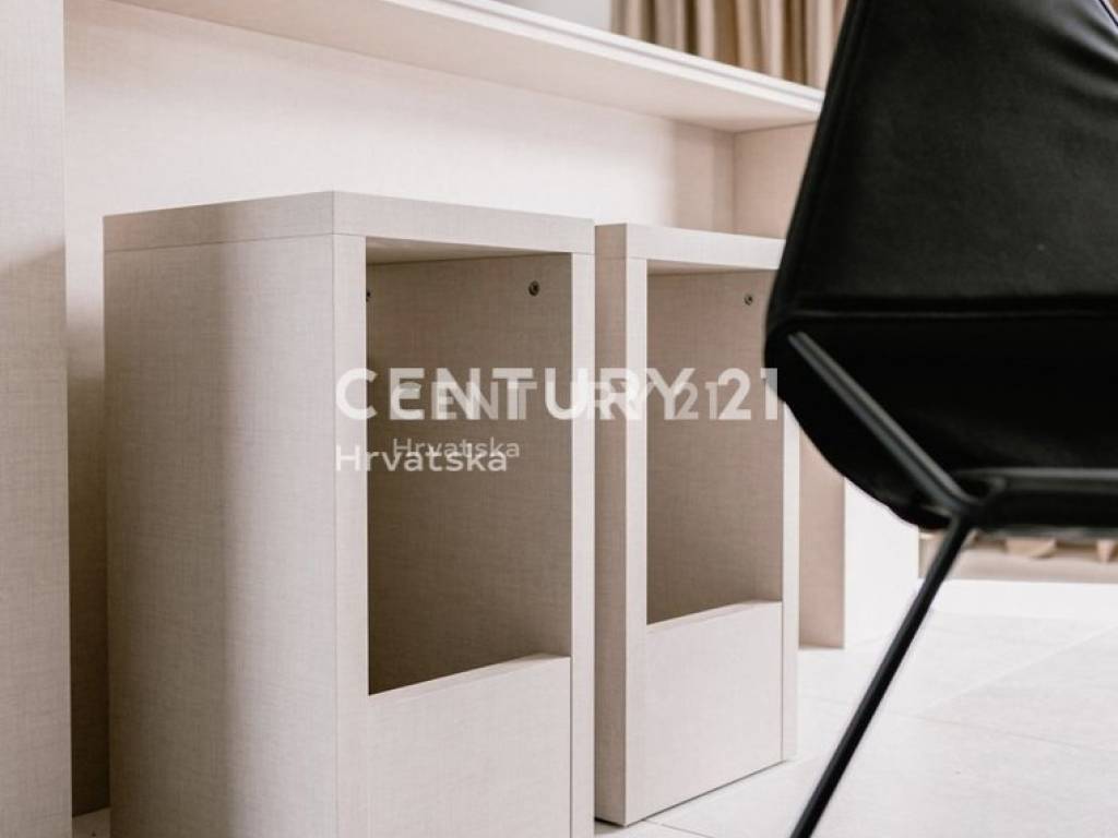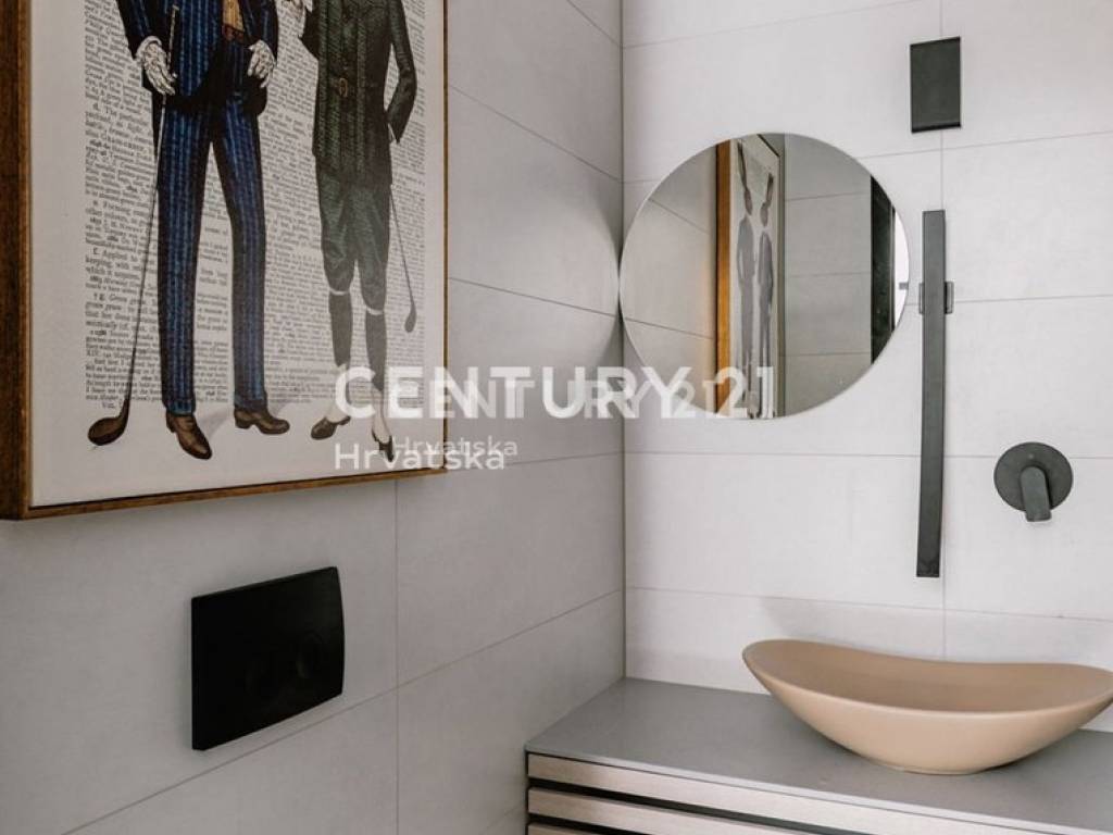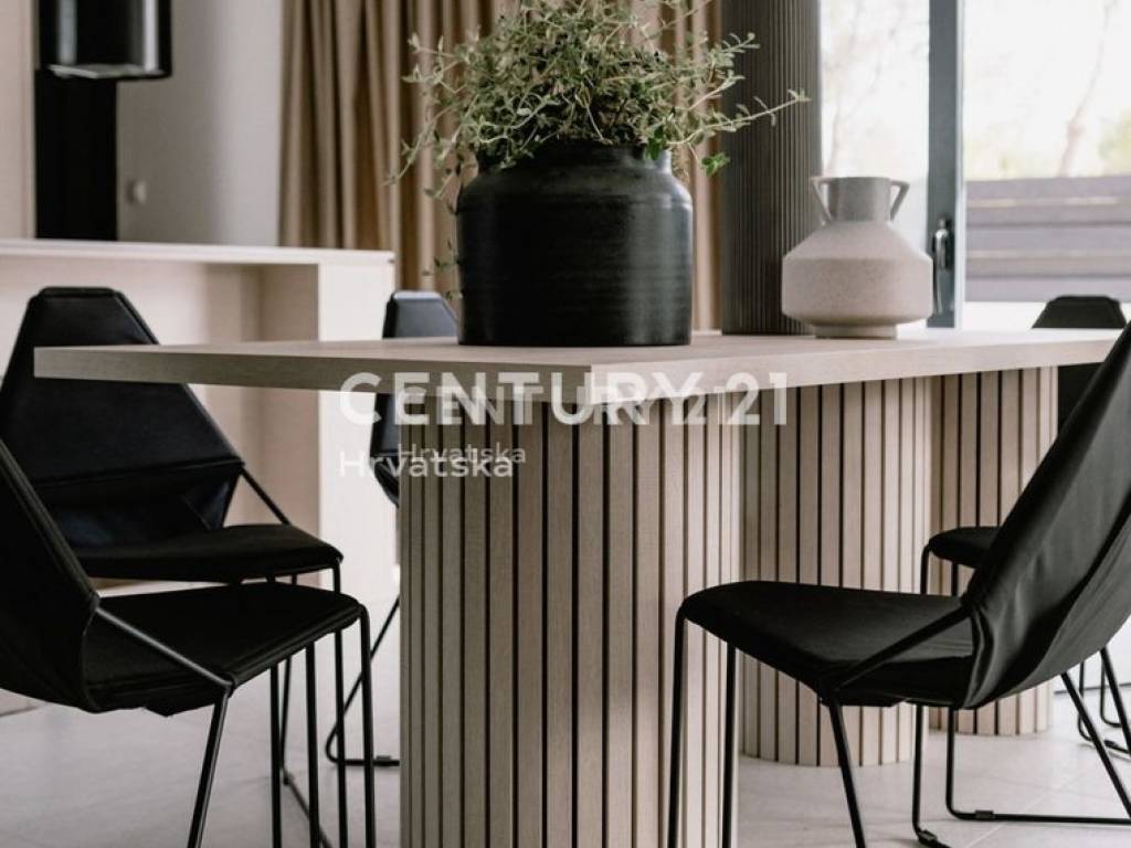 Prizemlje se sastoji od ulaznog hodnika,  kuhinje sa blagovaonicom i dnevnim boravkom., spavaće sobe sa kupaonicom, toalet, te lijepe terase s koje se izlazi do dvorišta u kojem je smješten bazen od 40 m2.