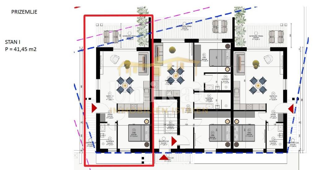 The apartment is located in a residential building with a total of 5 residential units, in the quiet place Fuškulin near Poreč. The distance to the sea is 3.5 km. The neighborhood is mostly private holiday homes, and since the building is located on the edge of the village, the position is very quiet, and the place is surrounded by vineyards and nature.