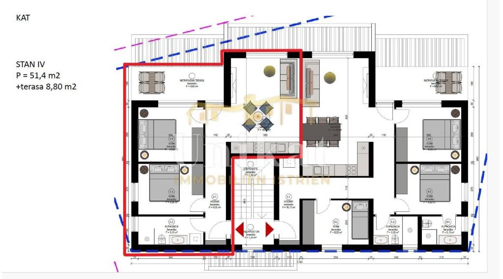 The building is being constructed of high quality materials. The apartment will be equipped with air conditioning for heating/cooling, optionally with underfloor heating. It is being sold turnkey-ready, without furniture.