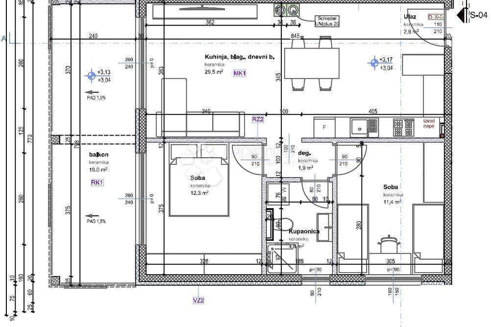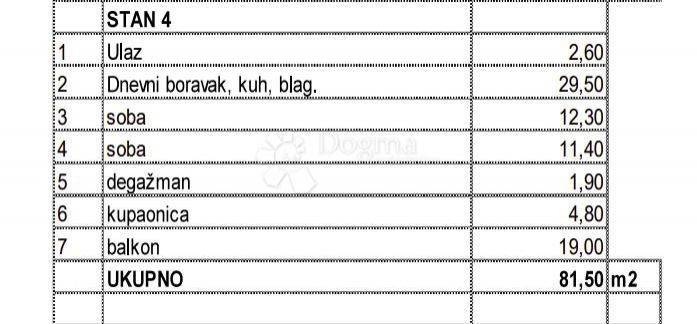 Apartment S4 Apartment S4 has a total area of 75 m² and is located on the first floor of the building. It consists of two bedrooms, a living room with a dining area and kitchen, a bathroom, a hallway, a balcony, and a separate storage room. From the hallway, you enter the living room with the dining area and kitchen, and from the living room, you exit onto the balcony. Heating is provided by a heat pump with underfloor heating, and cooling is ensured by an air conditioning unit. The apartment also has a separate storage room of 3.70 m² and two parking spaces. The building is equipped with a lift, allowing easier access to the apartment. The building is located in an attractive and quiet area, just 300 meters from the center of the settlement, where markets, cafes, restaurants, pharmacies, and other necessary amenities are available. Novigrad is 7 km away, Poreč is 11 km away, and the sea and beach are 2000 meters away. The expected completion of construction is at the end of 2025. Note: The listed price applies to legal entities; for private individuals, the price is increased by the amount of VAT. ID CODE: IS1515927 Karlo Šestan Asistent u posredovanju Mob: 091/361-1922 Tel: 052 770 811 E-mail: karlo.sestan@dogma-nekretnine.com www.dogma-istra.com