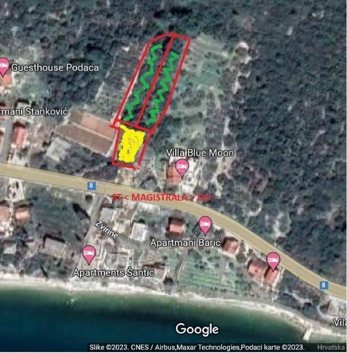 For Sale: Construction Land with a Breathtaking View of Pelješac and Hvar For sale is a construction land located right next to the main road, with an area of 700m² (yellow) + 640m² of agricultural land from the red zone annex. The terrain has a gentle slope, making it ideal for building apartments, a villa, or a private house. It is elevated above the main road, offering a permanent, stunning, and timeless view of Pelješac and Hvar. Additionally, above the plot, there are two agricultural land parcels totaling 2100m² (green), with negotiable price per m² for the sale of the entire package. All paperwork is in order, with no encumbrances. The land is sold by the owners. Marija Bošnjak Makarska +385 (0) 95 372 7471 marija.bosnjak@dogma-nekretnine.com ID CODE: ST3381 Marija Bošnjak Asistent u posredovanju Mob: 095/372-7471 Tel: +385 21 293 201 E-mail: marija.bosnjak@dogma-nekretnine.com www.dogma-dalmacija.com