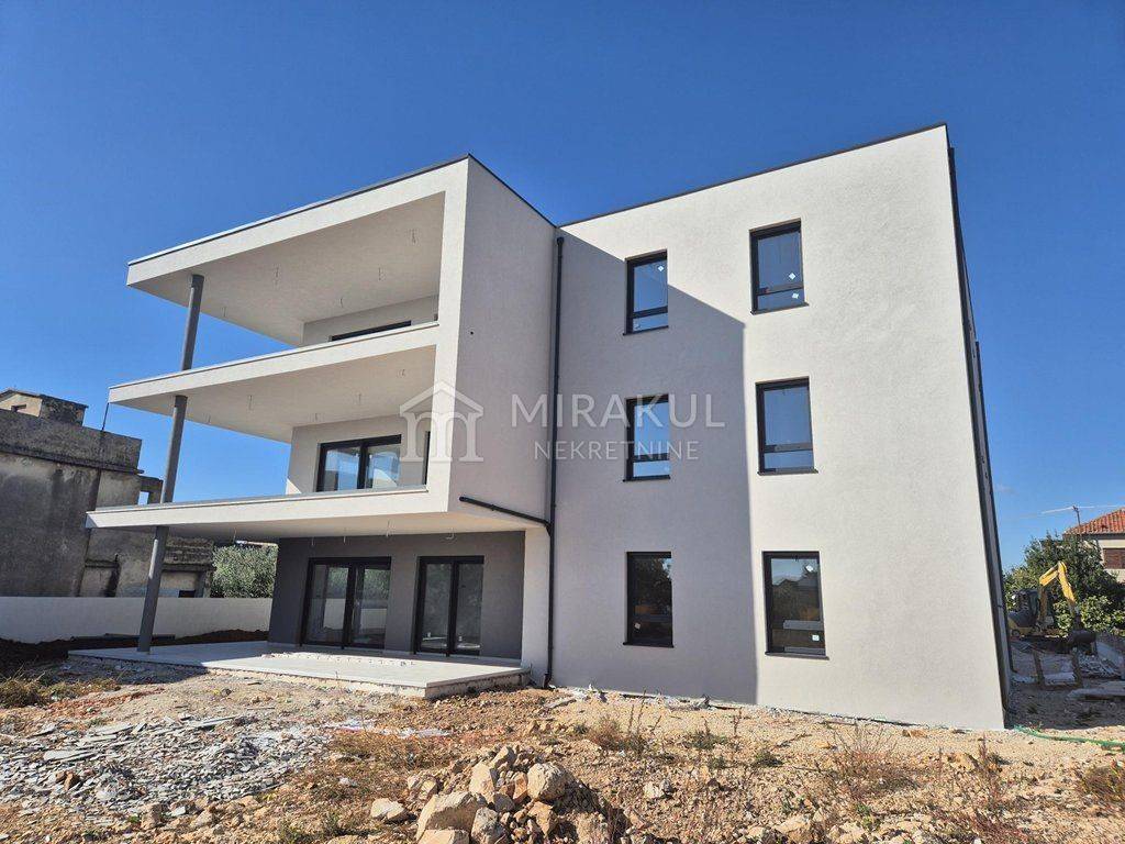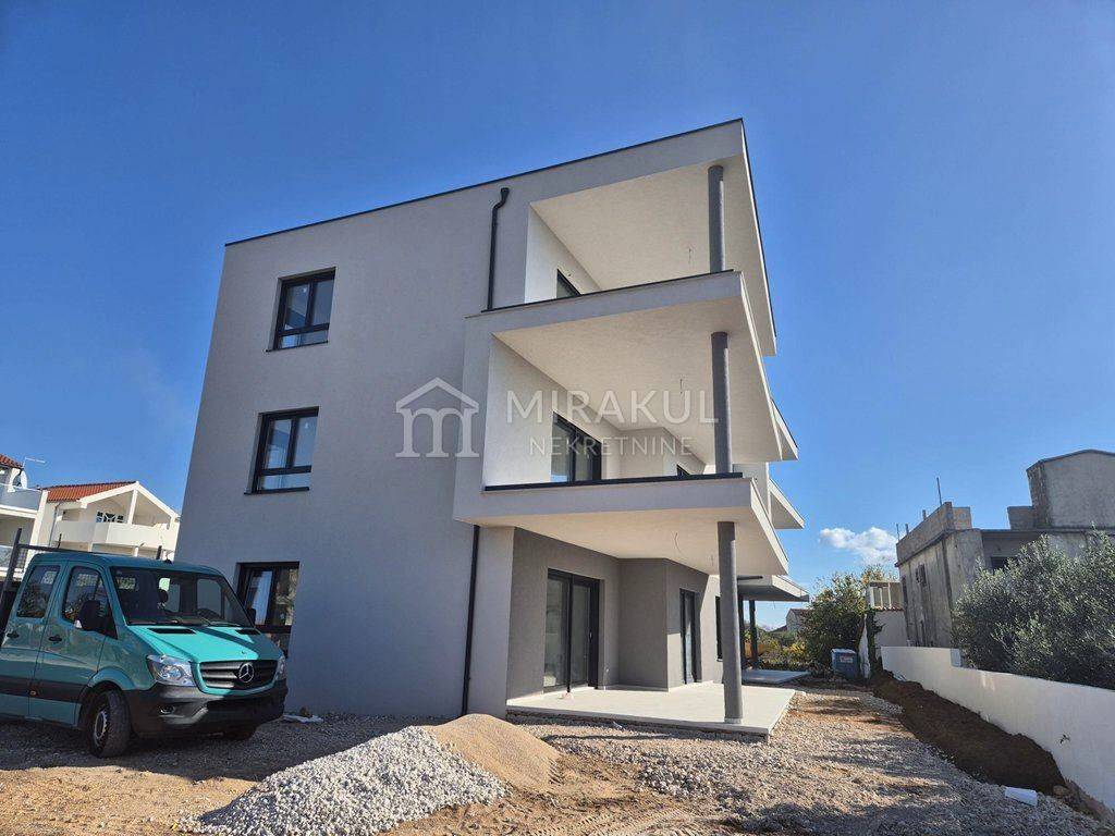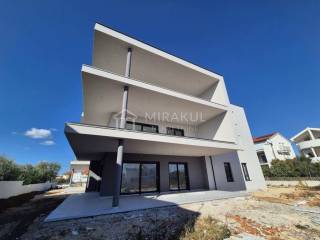 The apartment has a parking lot, the staircase has an iron railing. The stairs are made of stone. The rooms will have laminate flooring, electric underfloor heating, all rooms are air-conditioned, PVC joinery, electric shutters, mosquito nets, glass terrace railing.