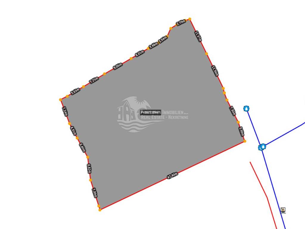 Building land of 1680 m² near Primosten. The land has electricity and water connections in the immediate vicinity. Access to the land is via an asphalted road. From the land there is a view of the sea and the islands. The land is located approx. 5 km from the town center.