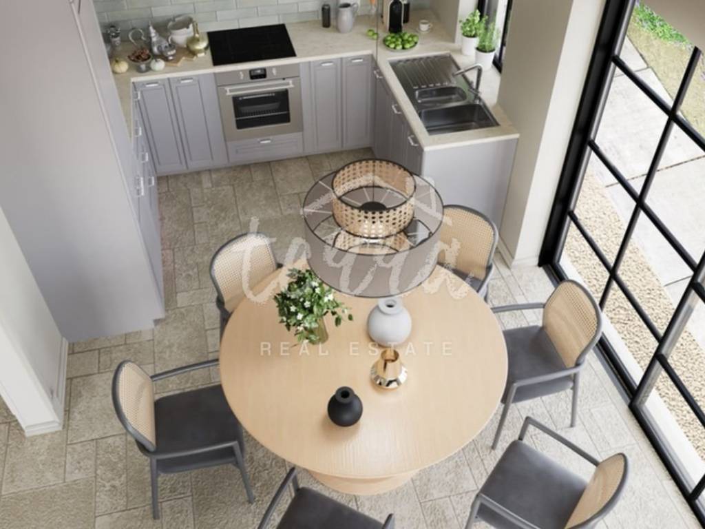 On the ground floor there is a spacious living room, kitchen and dining room, bedroom with bathroom, pantry, storage room and toilet, and access to the terrace and pool. The hallway leads to the first floor, where there are two spacious bedrooms, each with its own bathroom and terrace.