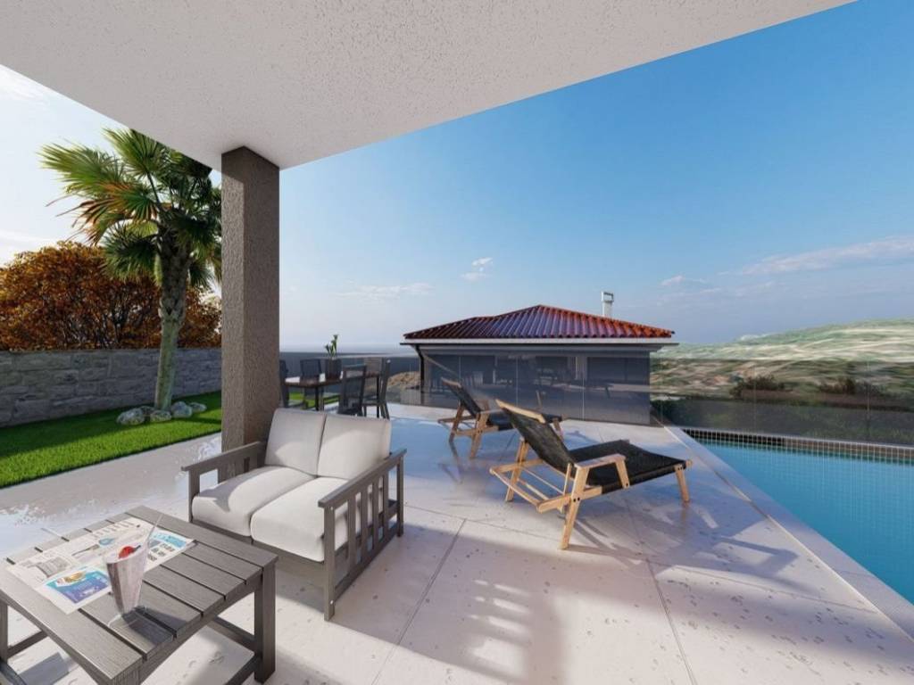 Otok Krk, Vrbnik, prodaja ekskluzivnog apartmana površine 113,20 m2, u prizemlju nove apartmanske zgrade, s bazenom i uređenom okućnicom. Apartman se sastoji od dnevne sobe, kuhinje, blagovaone, master sobe s garderobom i kupaonicom, spavaće sobe, kupaonice, vešeraja, hodnika, terase te spremišta u podrumu zgrade. Vrhunska gradnja i oprema, klimatizacija, podno grijanje, ALU stolarija, lift, sauna, fitness soba, dva parkirna mjesta. Atraktivna lokacija, 600 m od mora.