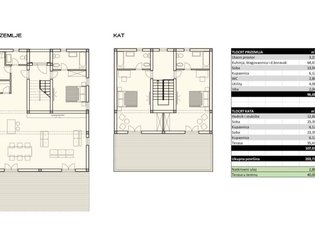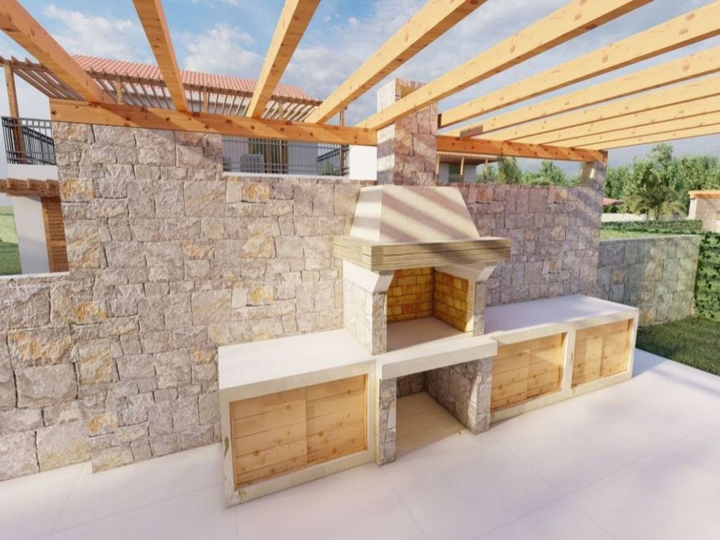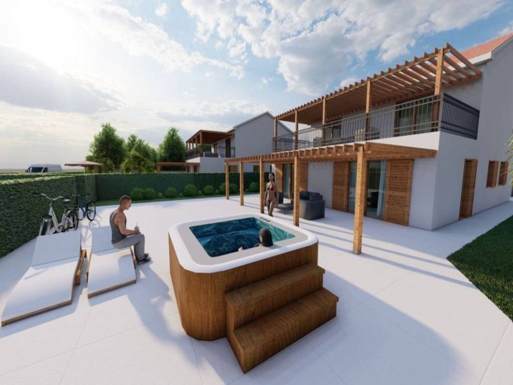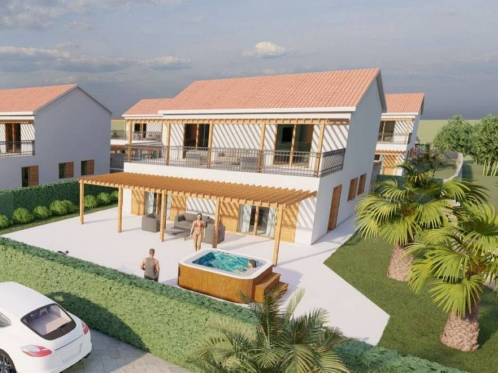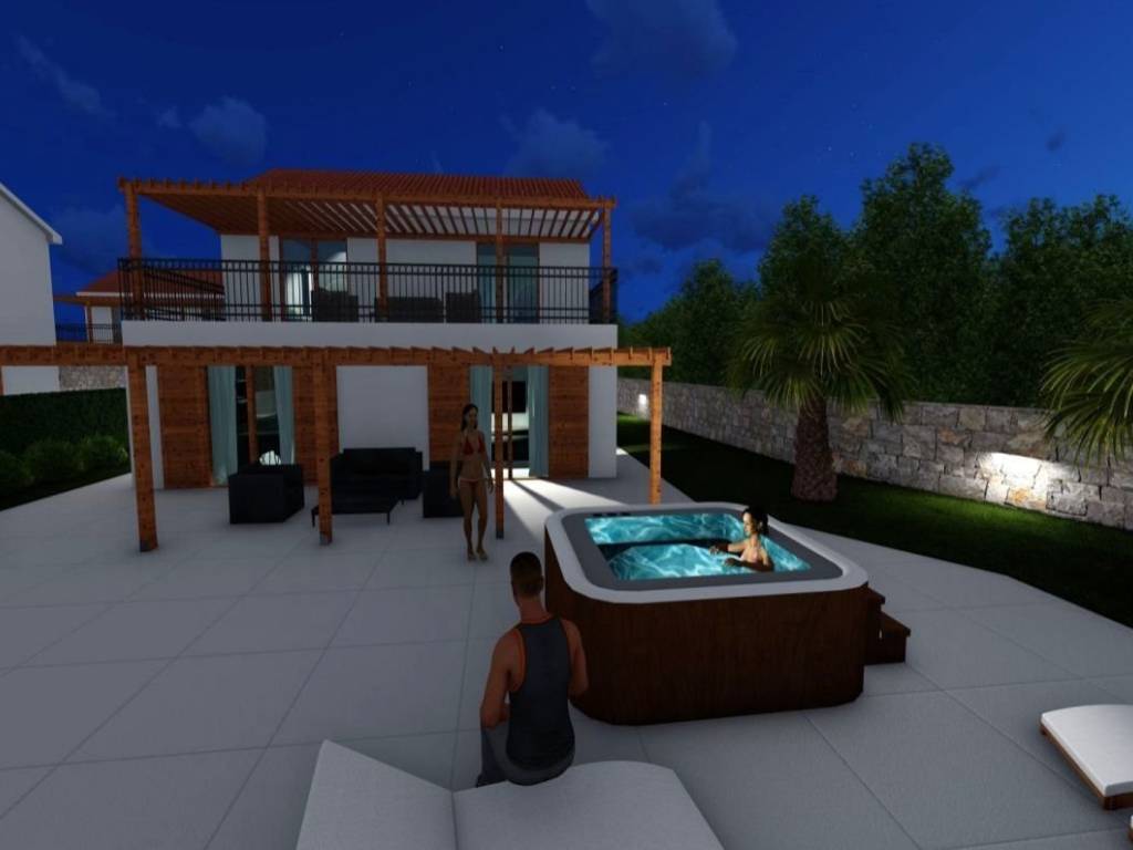 Otok Krk, Malinska, šire područje, prodaja nove rustikalne vile površine 203,71 m2, s jacuzzijem i uređenom okućnicom. Vila se sastoji od prizemlja s dnevnom sobom, kuhinjom, blagovaonom, spavaćom sobom, kupaonicom, toaletom, spremištem i terasom od 40 m2, te prvog kata s dvije spavaće sobe s privatnim kupaonicama, hodnikom i izlazom na terasu od 35,41 m2. Kvalitetna gradnja i oprema, vrhunske sanitarije, klimatizacija, instalacije za protuprovalne senzore, dva parkirna mjesta. Mirna lokacija, 2000 m od mora.