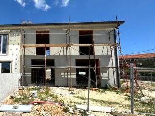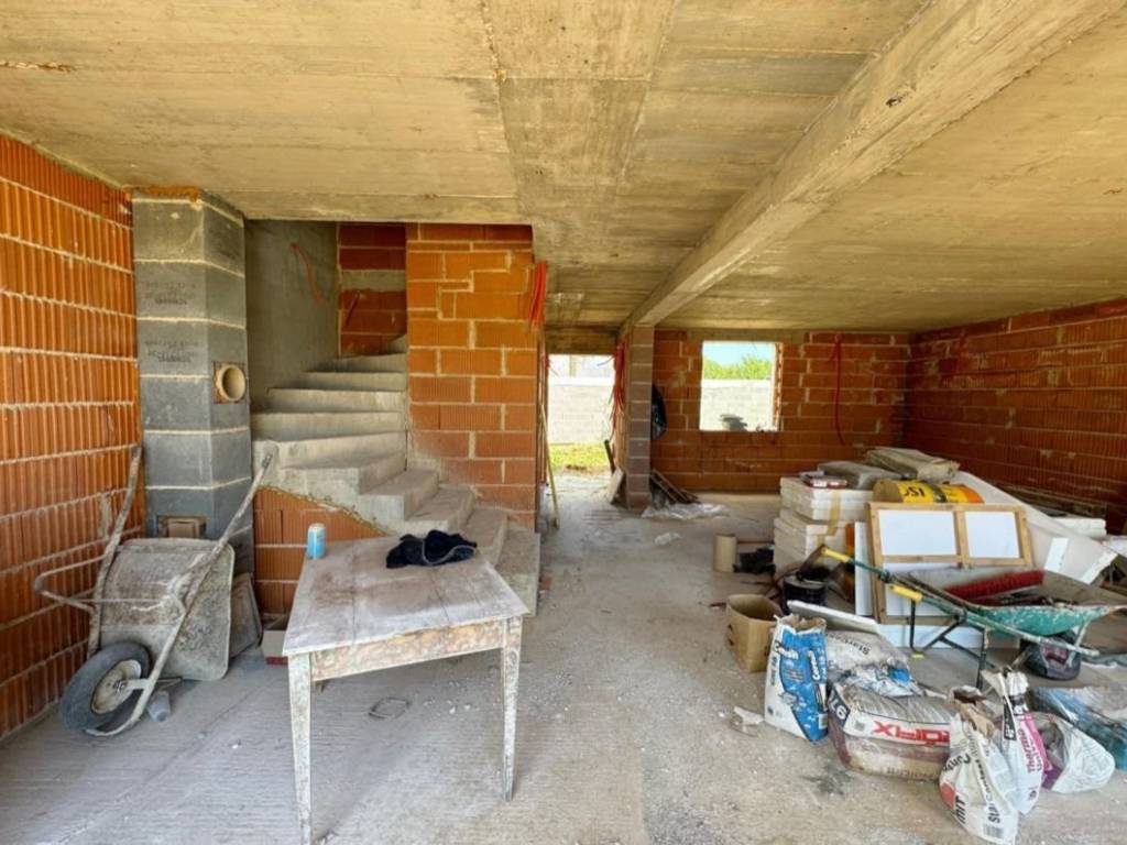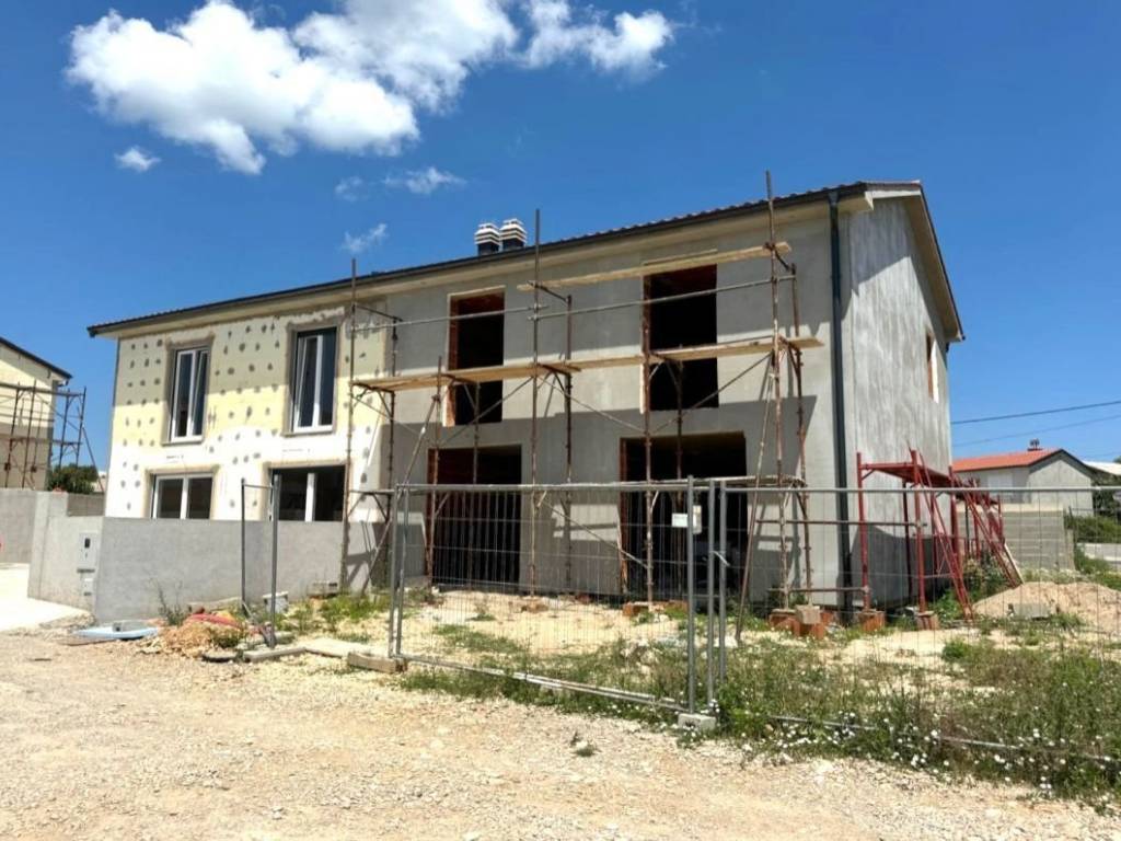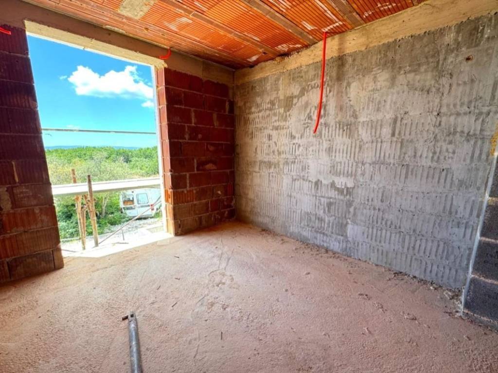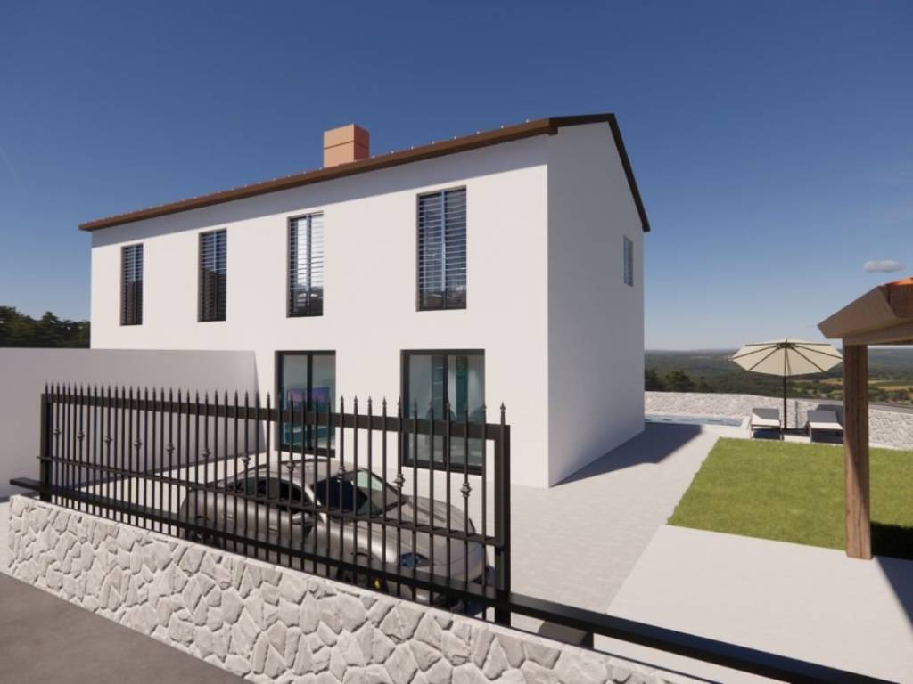 Otok Krk, Vrbnik, šire područje, prodaja dvojne kuće površine 117 m2 u roh bau fazi. Kuća se sastoji od prizemlja s dnevnom sobom, kuhinjom, blagovaonom, toaletom, hodnikom i spremištem, te prvog kata s tri spavaće sobe i dvije kupaonice. Kvalitetna gradnja i oprema, tri parkirna mjesta. Mirna lokacija, 4000 od plaže i centra Vrbnika.