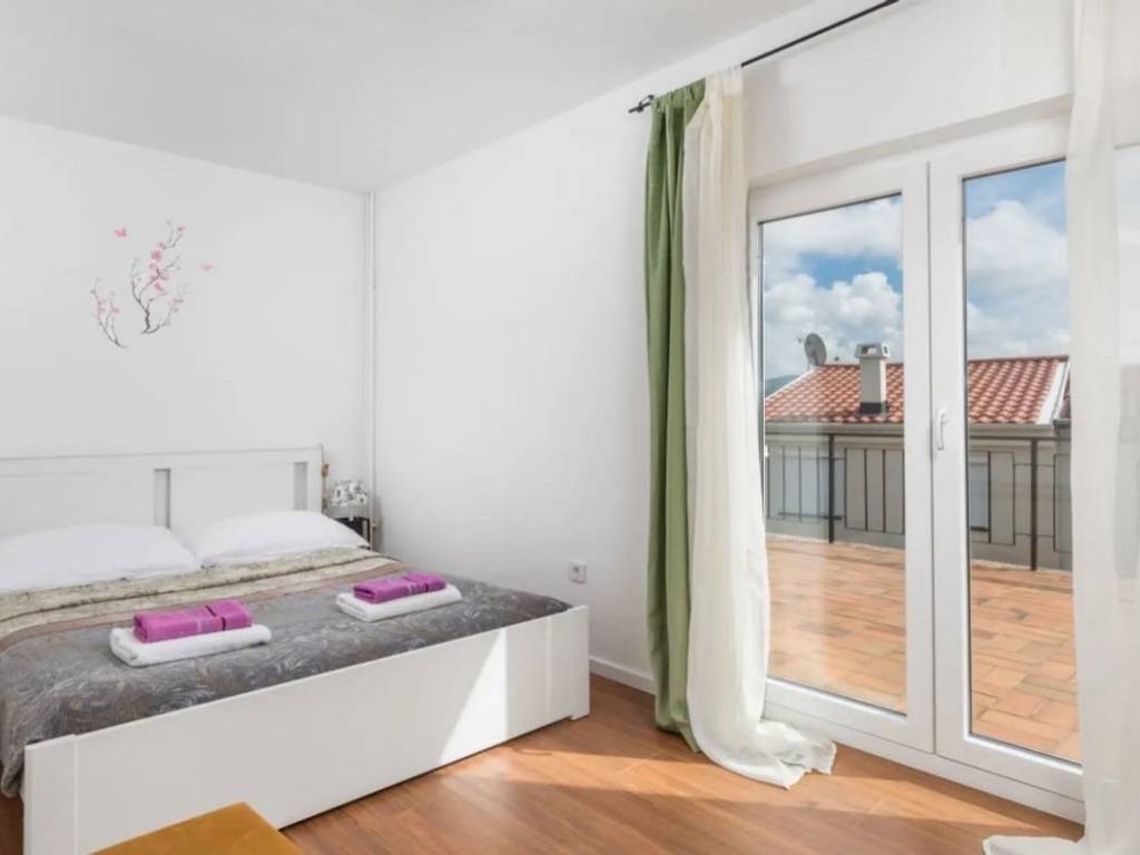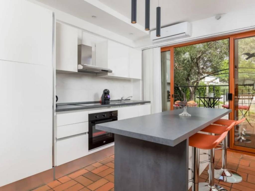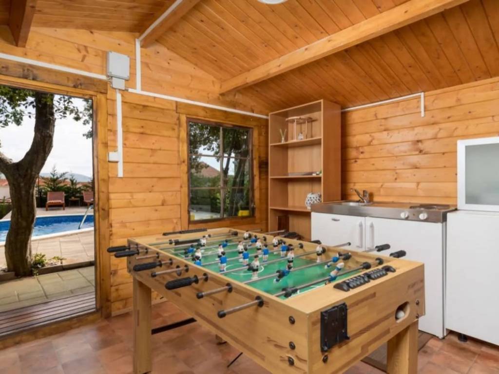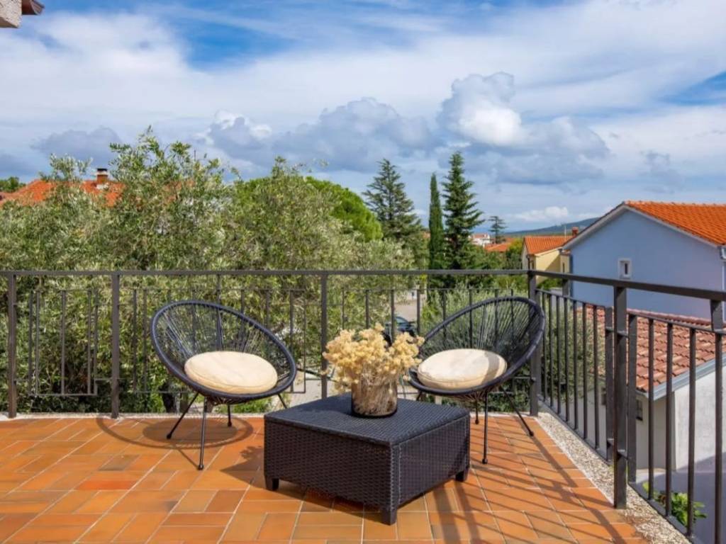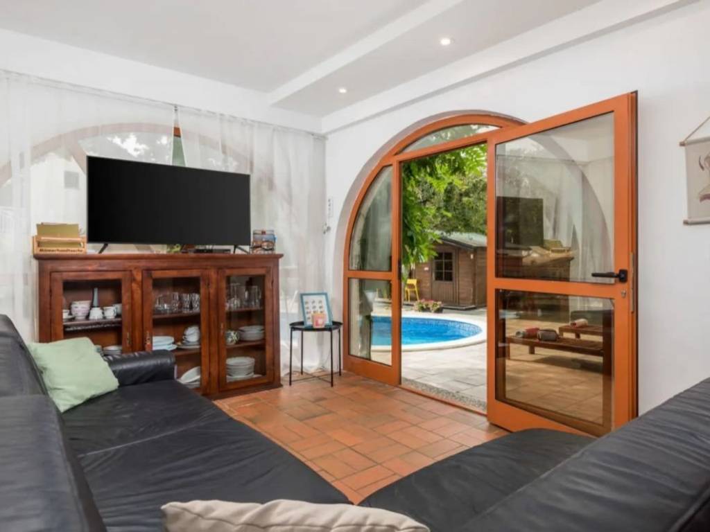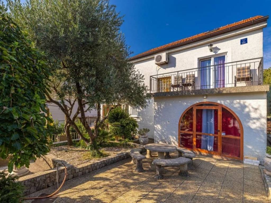 Otok Krk, grad Krk, Kornić, prodaja samostojeće kuće površine 250 m2, s bazenom i pogledom na more. Kuća se sastoji od suterena s garažom, prizemlja s dnevnom sobom, kuhinjom, blagovaonom, dvije spavaće sobe, kupaonice i terase, prvog kata s četiri spavaće sobe, kupaonicom, dva balkona i terasom te potkrovlja. Klimatizacija, električno centralno grijanje, pomoćna drvena kućica s kuhinjom, četiri parkirna mjesta. Mirna lokacija, 900 m od mora.