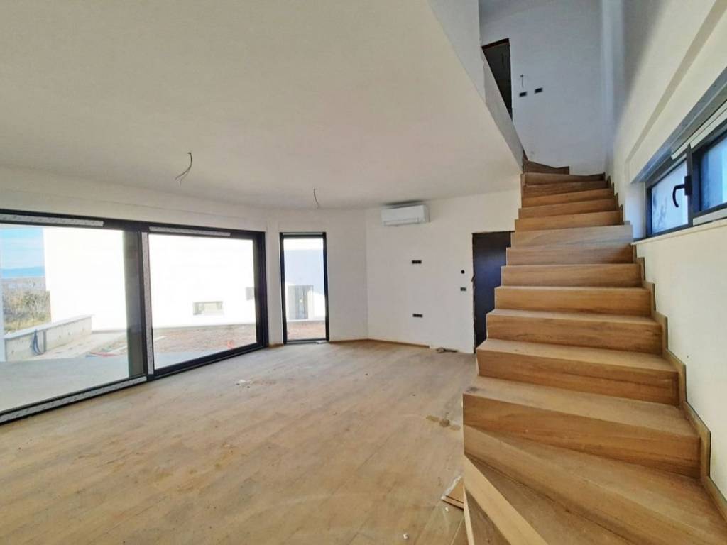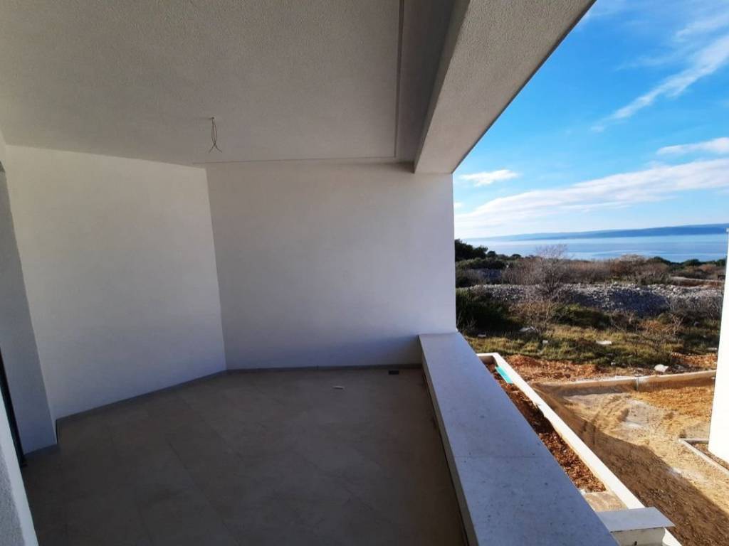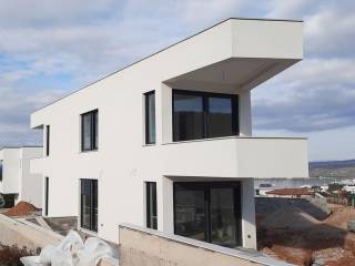 Otok Krk, Punat, prodaja novog atraktivnog dvoetažnog apartmana površine 81,66 m2, s pogledom na more i uređenom okućnicom, na mirnoj lokaciji. Apartman se sastoji od prizemlja s dnevnom sobom, kuhinjom, blagovaonom, spremištem, stubištem, kupaonicom i terasom, te prvog kata s dvije spavaće sobe, kupaonicom, hodnikom i balkonom. Kvalitetna gradnja i oprema, klimatizacija, parkirno mjesto.