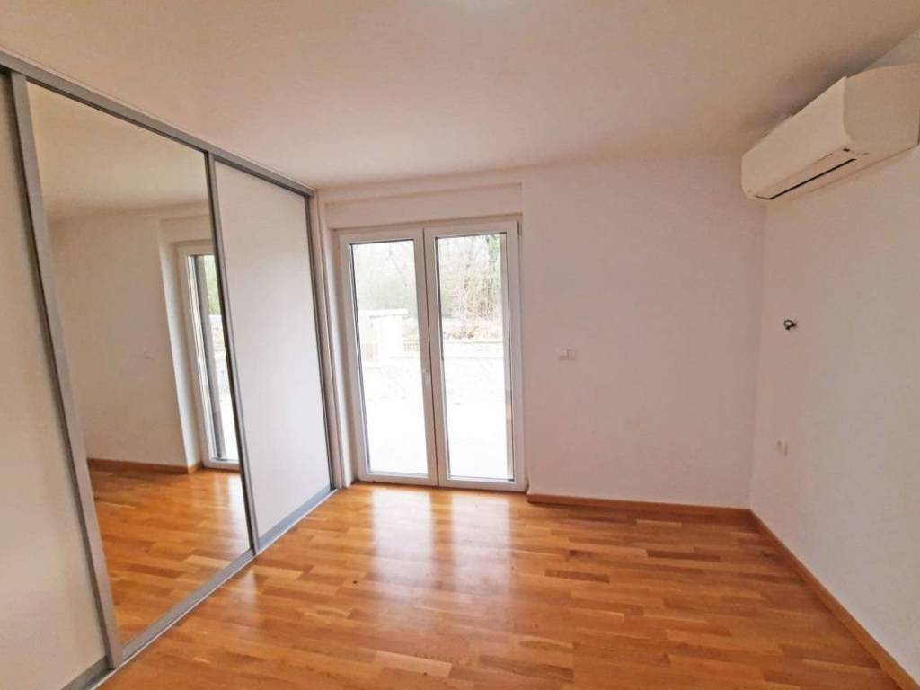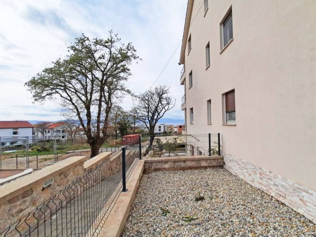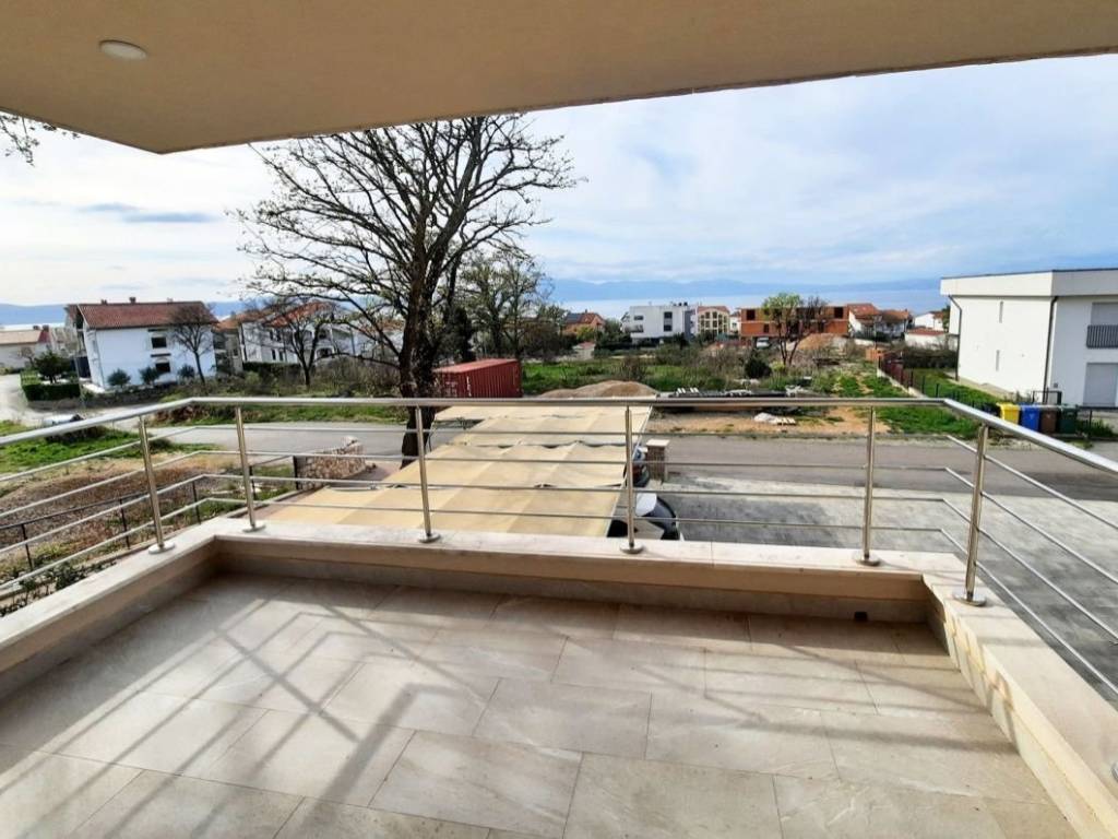 Otok Krk, Njivice, prodaja atraktivnog apartmana površine 73,33 m2, u prizemlju apartmanske zgrade s pogledom na more i uređenom okućnicom od 66 m2. Apartman se sastoji od dnevne sobe, kuhinje, blagovaone, dvije spavaće sobe, kupaonice, spremišta, hodnika i dvije terase. PVC stolarija, klimatizacija, parkirno mjesto. Mirna lokacija, 1500 m od mora.