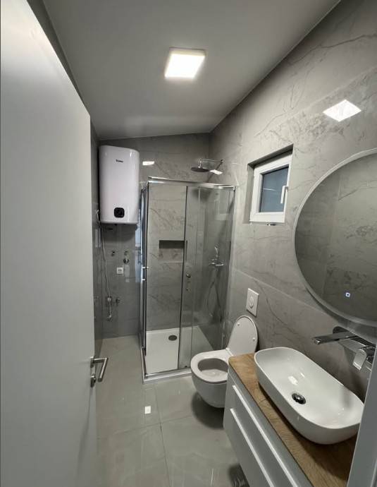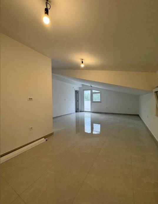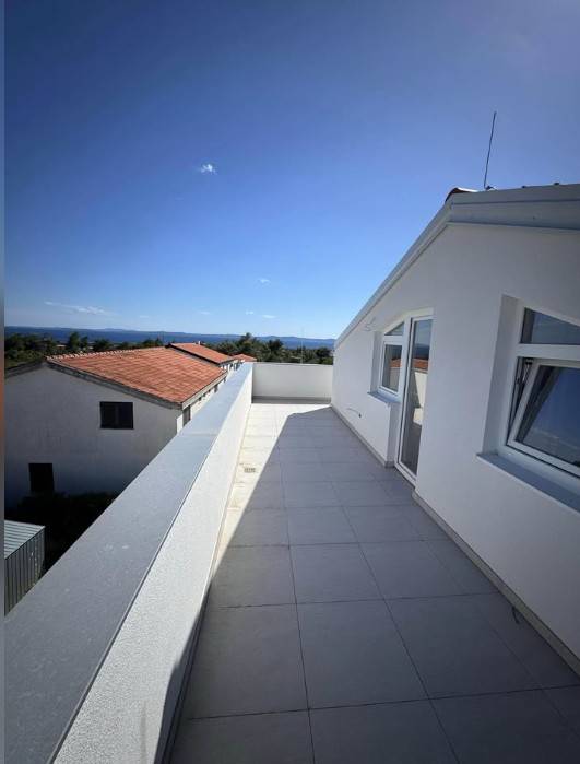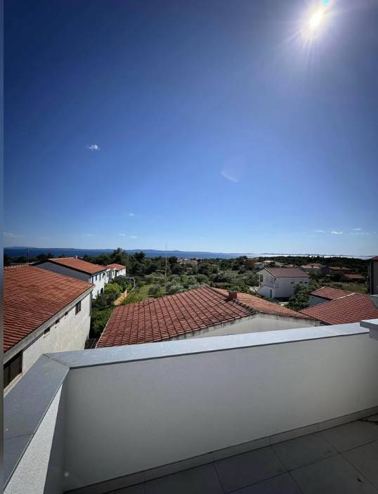 Prodaje se apartman na 2. katu novogradnje površine 50 m2. Zgrada se sastoji od prizemlja i dva kata (dupli objekt), na svakom ulazu po tri satmbene jedinice (jedna po etaži). Stambeni dio se sastoji od jedne spavace sobe, kuhinje sa dnevnim boravkom , kupaonice, te velike terase od 20m2 sa pogledom na more . Pripada mu jedno parkirno mjesto. Više informacija na upit.