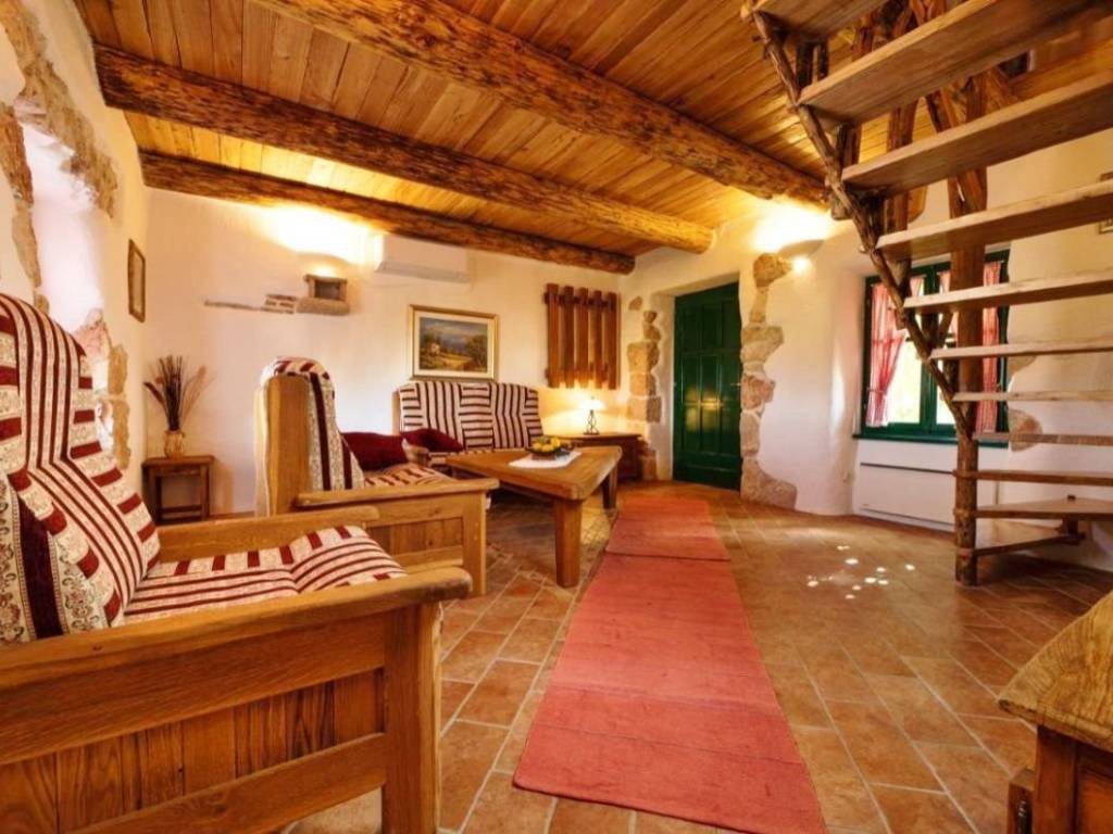 Otok Krk, Dobrinj, šire područje, prodaja uređene stare kamene kuće površine 225 m2, s bazenom i uređenom okućnicom površine 800 m2, na mirnoj lokaciji, 3000 m od mora. Kuća se sastoji od podruma s prostorijom za druženje, prizemlja s dnevnom sobom, kuhinjom, blagovaonom, toaletom i terasom te prvog kata s pet spavaćih soba i tri kupaonice. PVC stolarija, klimatizacija, bočalište, vanjski kamin, šest parkirnih mjesta.