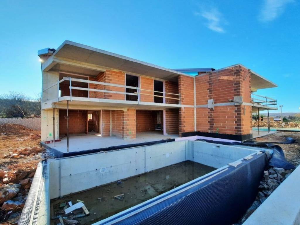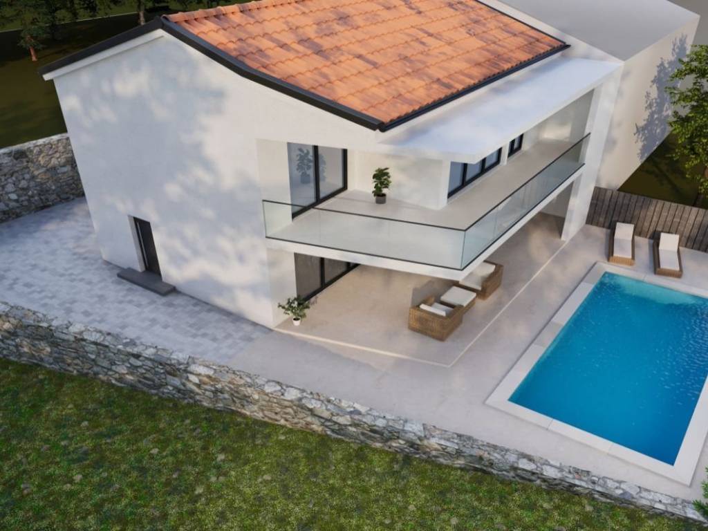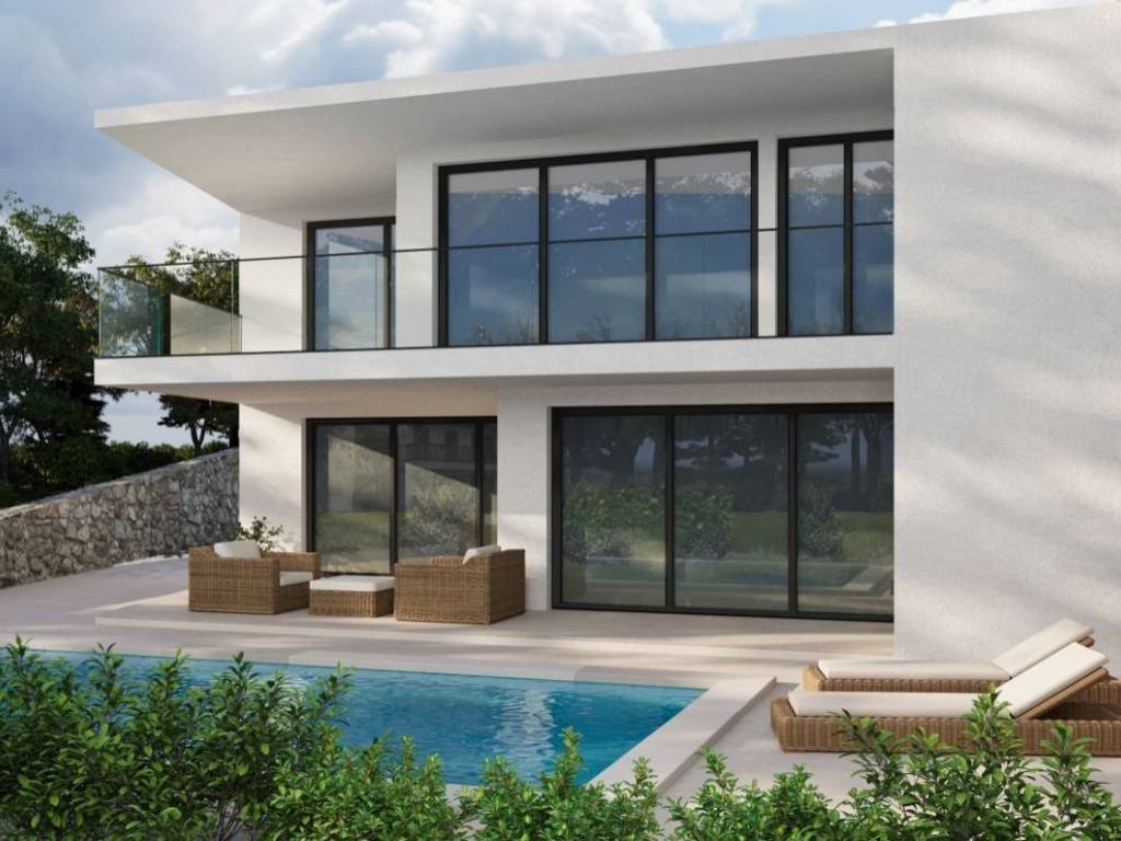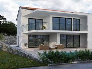 Otok Krk, Uvala Soline, prodaja nove dvojne vile površine 150 m2, s bazenom i pogledom na more, na atraktivnoj lokaciji, 200 m od plaže. Vila se sastoji od prizemlja s dnevnom sobom, kuhinjom, blagovaonom, jednom spavaćom sobom s vlastitom kupaonicom, toaletom, hodnikom i terasom te prvog kata s tri spavaće sobe s vlastitim kupaonicama i prostorijom za druženje s izlazom na terasu. Kvalitetna gradnja i oprema, ALU-PVC stolarija s troslojnim staklom, podno grijanje, klimatizacija, dva parkirna mjesta.