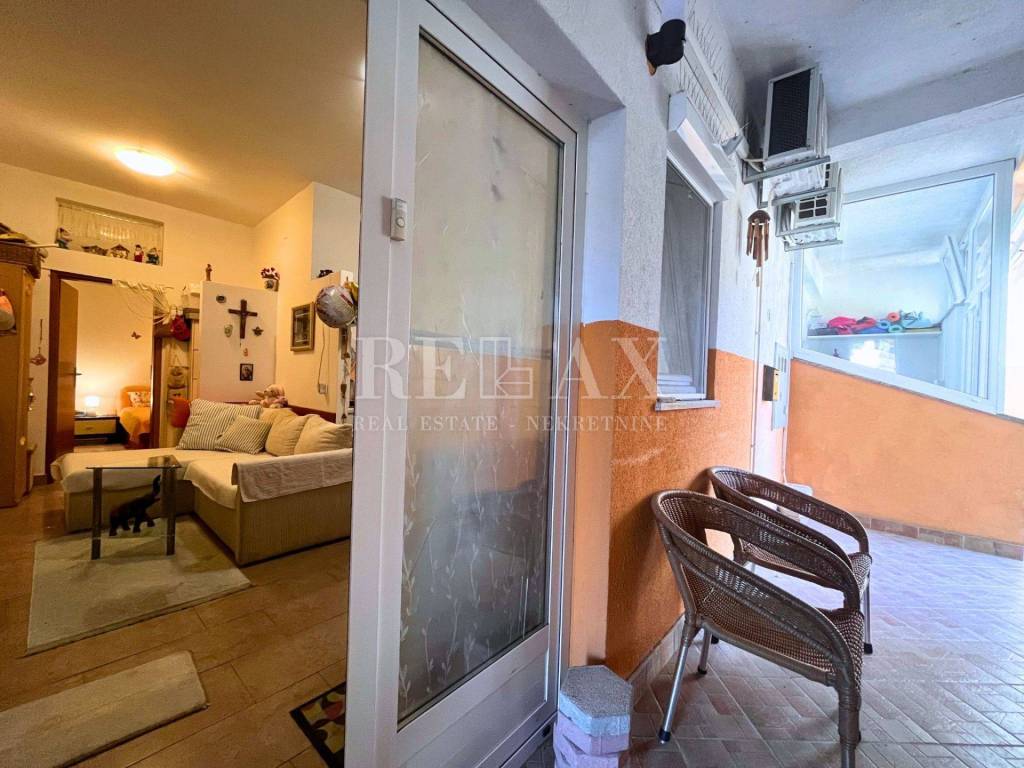 In front of the entrance is a shared, covered hallway used as a terrace – although not owned, it contributes to everyday comfort. The apartment also comes with a private parking space of 12 m², a significant advantage in a city location.