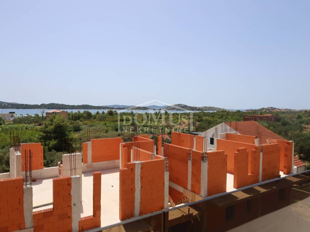 Vodice, near the beach "Plava plaža", there is a newly built residential building with 3 residential unitsThere are four floors in total: basement, ground floor, first floor and second floor. The building is modernly decorated with underfloor heating, high-quality floors and interior decoration, air conditioners for heating and cooling in every room, and electric blinds. The terraces of the residential units on the first and second floor offer a view of the sea.