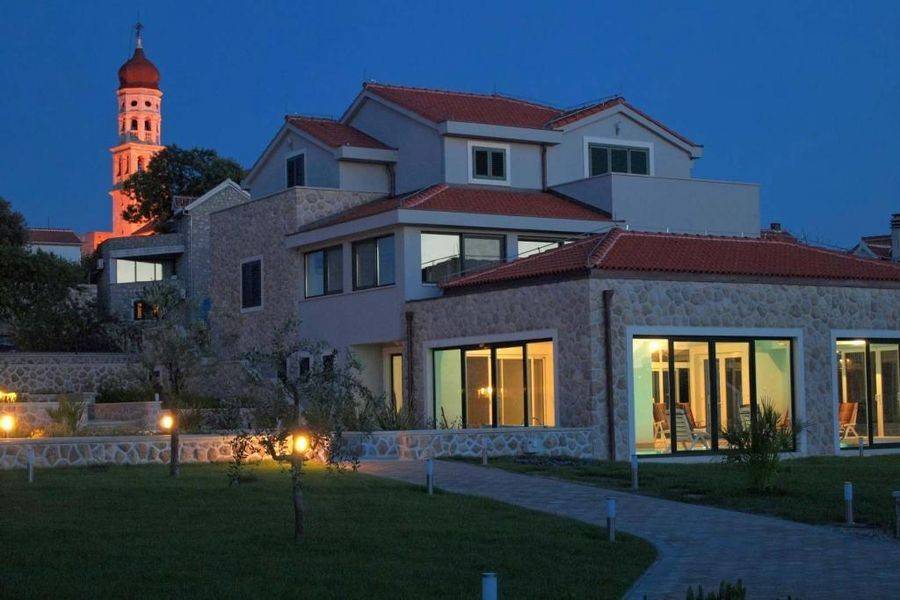 Luxury villa with plenty of land in Dalmatia, Murter for sale, The villa has a living space of 333m² surrounded by a 2900m² large property with its own park for children. In Erdgeswchoss an indoor swimming pool with hot tub, sauna, gym, bathroom, 2 toilets, shower rooms, tavern and a laundry room- the first floor are a living room, dining room, kitchen, 3 bedrooms, 2 bathrooms and a balcony. The upper floor consists of a living room with dining area, kitchen, 2 bedrooms and a bathroom. Please contact us. For more information about this exceptional property