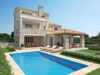 Mediterranean properties in Steinhaus style: Modern Villa with traditional elements in sea view Location This property is a luxurious new building project in local architectural style in Istria - Region Novigrad / Porec. The living / usable area is approximately 220 m2 - the land has an area of 658 m2. Disposition: Ground floor: Entrance hall, living room, kitchen with dining area, toilet, technical and storage room, two covered terraces 1st floor: two bedrooms, two bathrooms, two dressing rooms, covered terrace 2nd floor: bedroom, bathroom, wardrobe, terrace The Construction is carried out by a renowned company. On the final equipment can be taken currently still influence. No commission for the buyer!