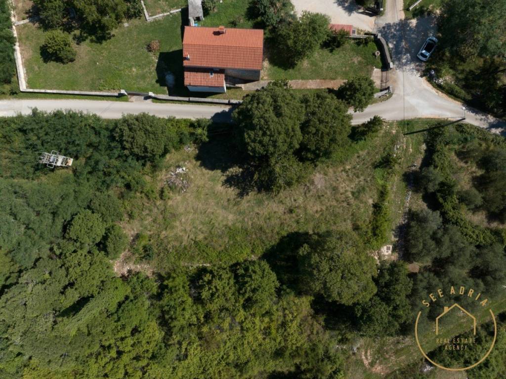A plot of land with an area of 1000 m2 is for sale, with a project for a modern villa. It is located in a quiet location, in the small village of Sinožići, 2 km from Baderna.
