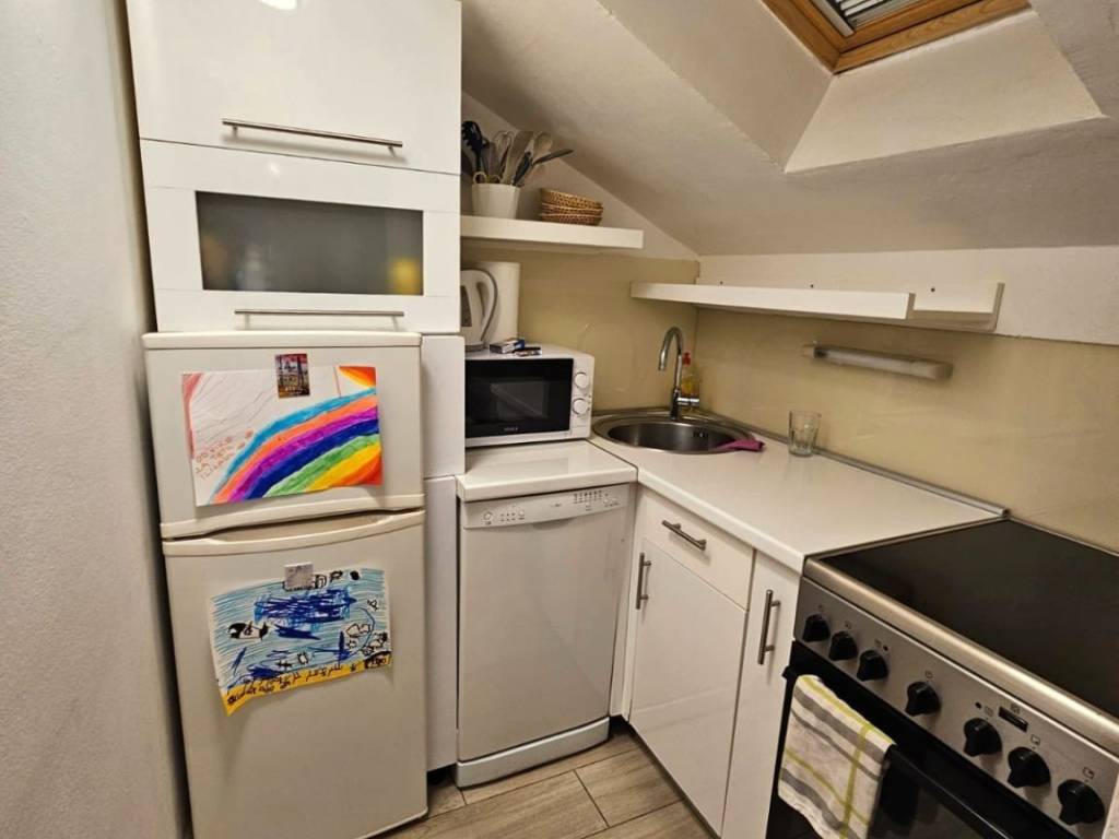For sale is an attic apartment with an area of 49.47 m2. It consists of an entrance hall, 2 bedrooms, a bathroom, a living room and a small kitchen. It is located in the old town center and is a few steps away from the sea and the beach. The apartment has a storage room and is sold fully furnished.