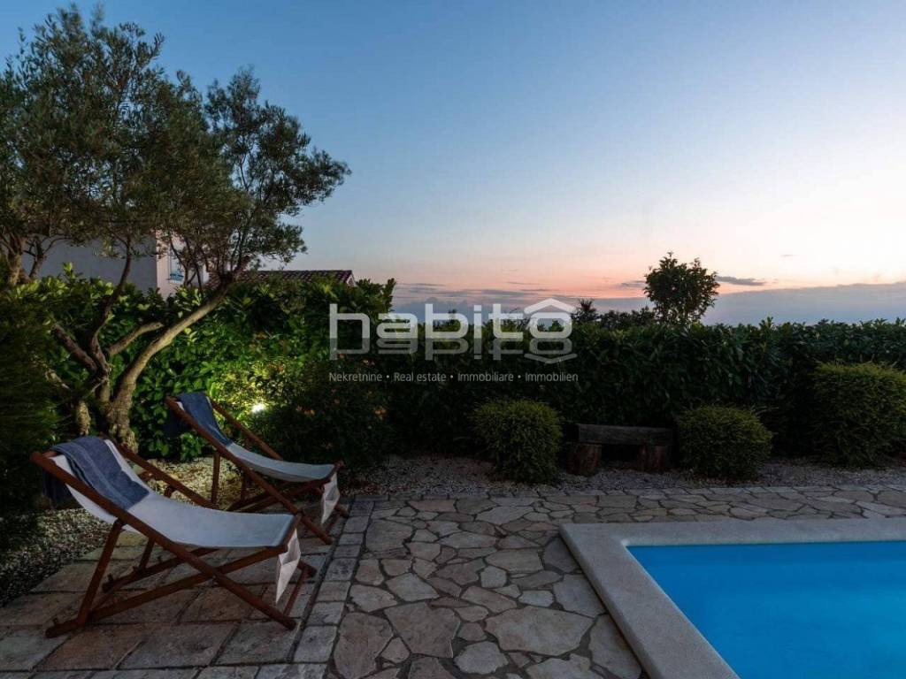 House: 160 m2 (air conditioners in every room for cooling and heating, 1st phase of under floor heating throughout the entire house, it is only necessary to purchase a heat pump, solar panels on the roof for heating 300 l of water, private parking for 3 vehicles, a 36 m swimming pool with sun loungers, a covered terrace with seating area and a barbecue).