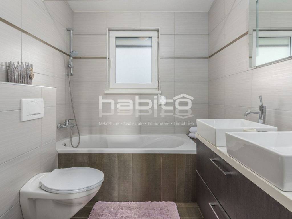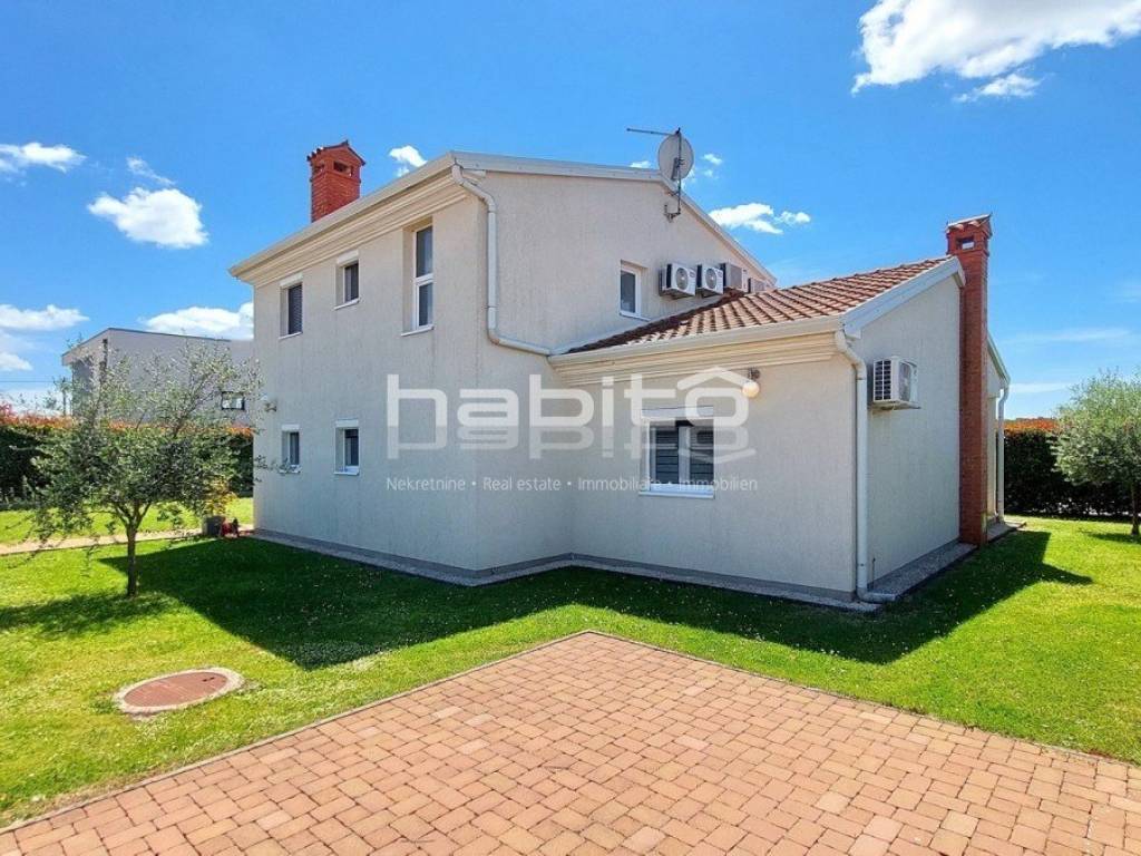 A detached house of 134 m is for sale, consisting of a living room, kitchen, dining room, covered terrace, hallway, one bedroom, bathroom and utility room/technical room on the ground floor, and a hallway, three bedrooms, bathroom and terrace on the first floor. The house was built in 2016 on a plot of 592 m, is being sold fully furnished, has a swimming pool, first phase/preparation for central heating, 4 air conditioners and two parking spaces. The house is 8 km from Poreč and the sea.