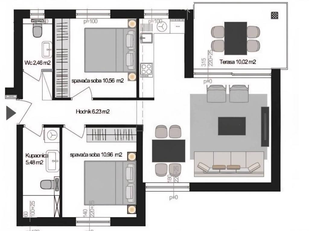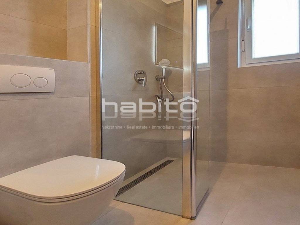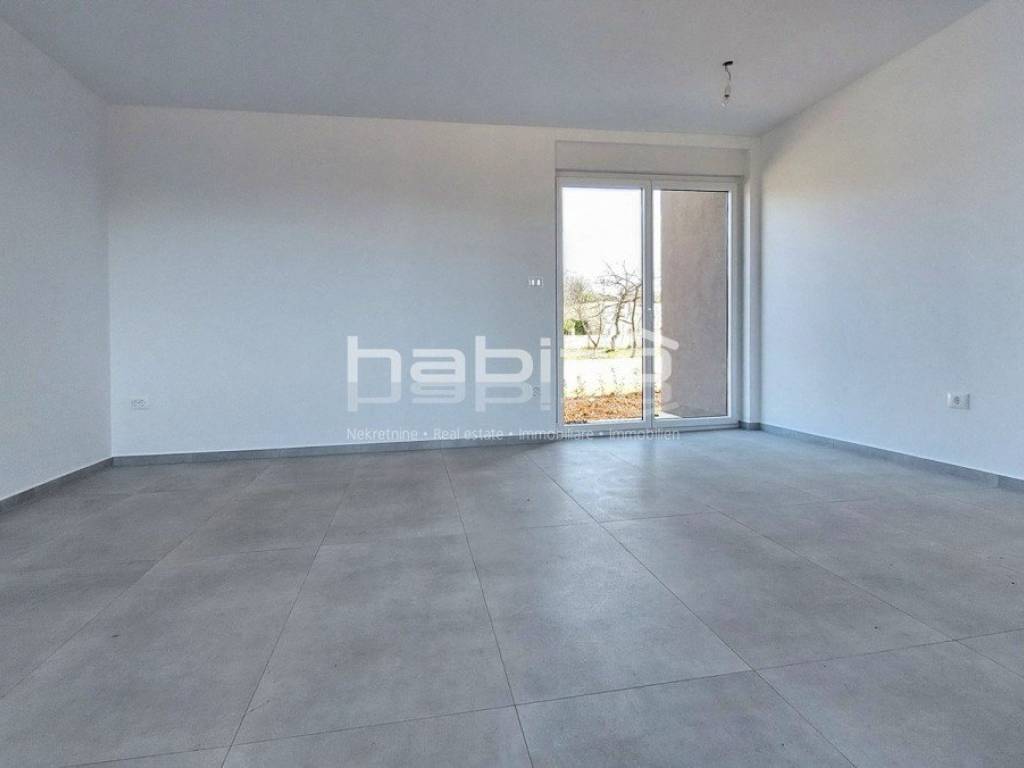 An apartment under construction in the vicinity of Porec is for sale, measuring 67 m2, consisting of a living room, dining room, kitchen, hallway, covered terrace, two bedrooms, bathroom and toilet. The apartment is located on the ground floor in a building with an elevator, has a spacious garden, electric underfloor heating in the living area and bathroom, security doors, air conditioning in the living room and bedrooms, a storage room in the basement of the building measuring 5 m2 and two parking spaces in front of the building. The apartment is approximately 2.5 km from the sea and 9 km from the center of Porec, in the village there are restaurants, cafes, a pharmacy, a school and a supermarket.