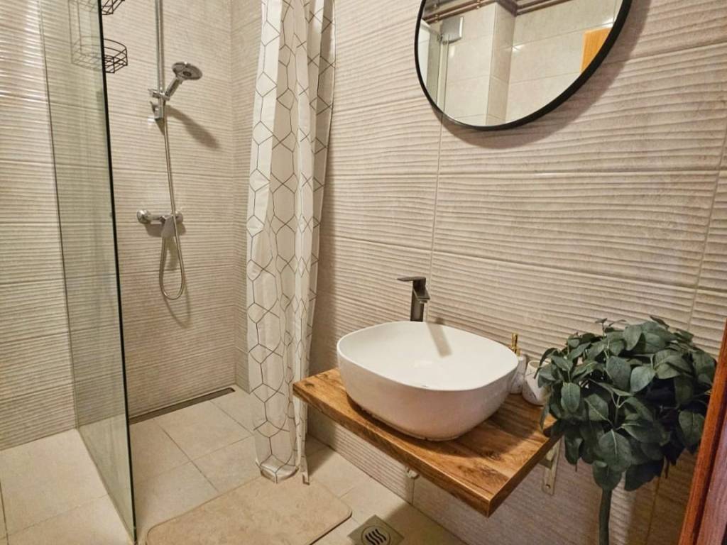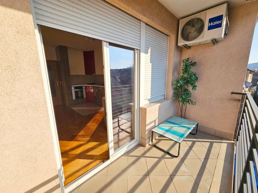 Stan je vrlo ugodan i topao s niskim režijama. Stolarija je PVC, električni podizači roleta, centralno plinsko grijanje, klima uređaj. Stan je u potpunosti funkcionalan s novim aparatima, perilica suđa, pećnica, novi moderan frižider, veliki TV, perilica rublja, video portafon.