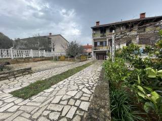 A spacious family house located in Loborica, on the outskirts of the village just a few minutes from Pula. The house has a net area of ​​176m2 and extends over three residential floors: ground floor, first floor and second floor, and a low non-residential attic. There is 1 apartment in the house. There is a garage on the ground floor and a duplex apartment on the first and second floors. The apartment has a direct entrance from the outside. You enter via an external staircase and an entrance canopy (loggia) into the hallway with an internal staircase to the second floor. From the hallway you can enter all other rooms of the apartment. On the first floor there is a toilet, kitchen with dining room and living room, and on the second floor there are three bedrooms and a bathroom. Each bedroom has a terrace.