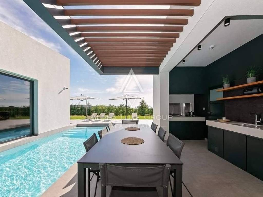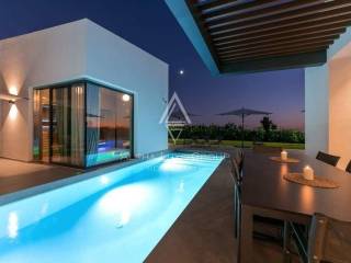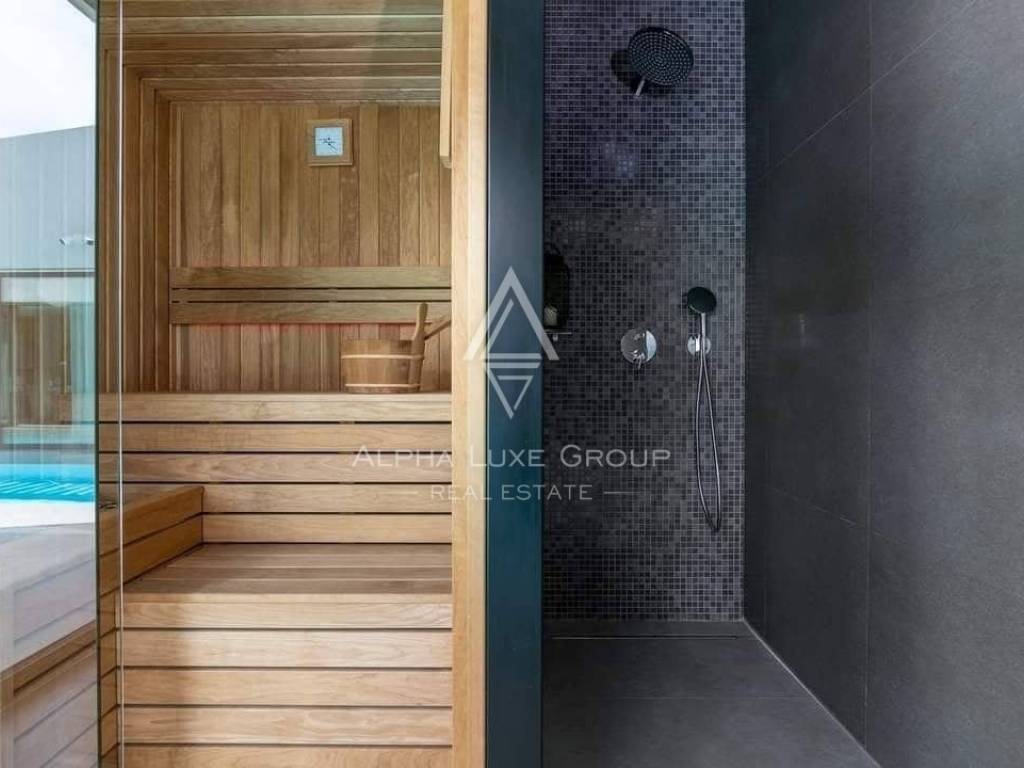 The house has 280 m2 of living area and a garden of 1000 m2on two floors and is fully air-conditioned. On the ground floor are an equipped kitchen with a dining room, a comfortable living room with a large TV and a fireplace, a wellness area, and two double bedrooms, each with its own bathroom/toilet and a separate toilet.
