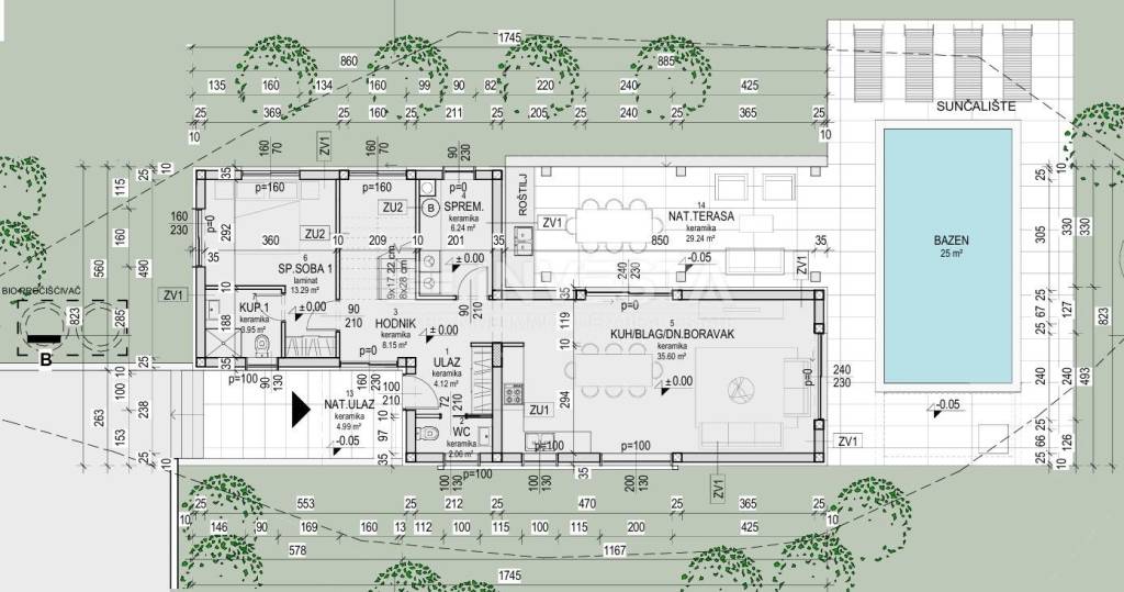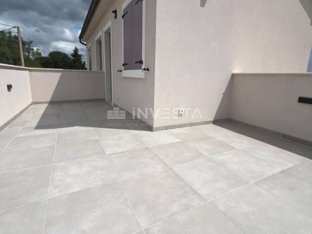 Croatia, Istria, Marčana, newly built modern villa 157m2 with a pool. A modern design villa is for sale in the vicinity of Marčana with a gross construction area of 157 m2. The location is just a 10-minute drive from the sea and the nearest beaches, with a wide selection of beautiful wild beaches. The villa consists of two floors with a net usable area of 140 square meters, ground floor and first floor with outdoor terraces on both levels, offering future owners relaxation and rest.