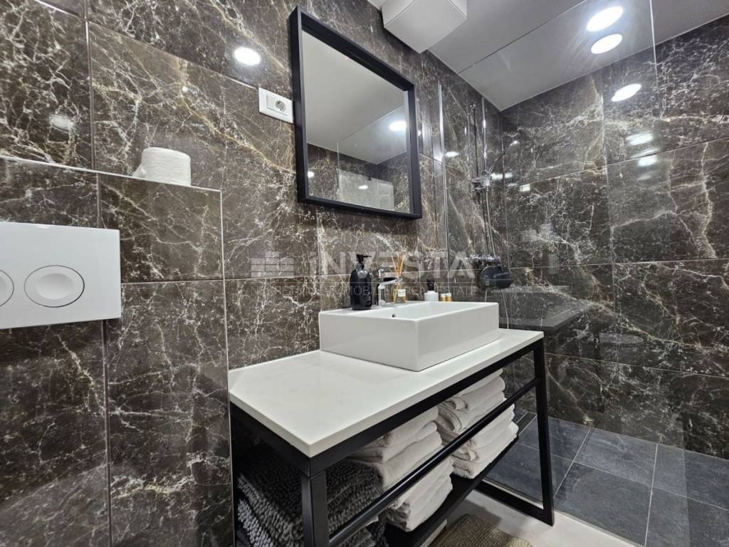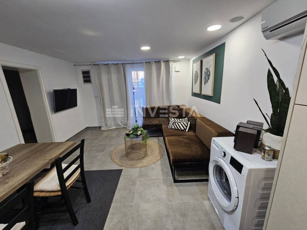 In an attractive location in Fažana, a popular tourist destination opposite the Brijuni National Park, an elegant and fully renovated apartment is for sale, situated in a slightly below-ground level of a neat residential building. The property is just 400 meters from the sea and the town center, located in a quiet street suitable for living and relaxation.