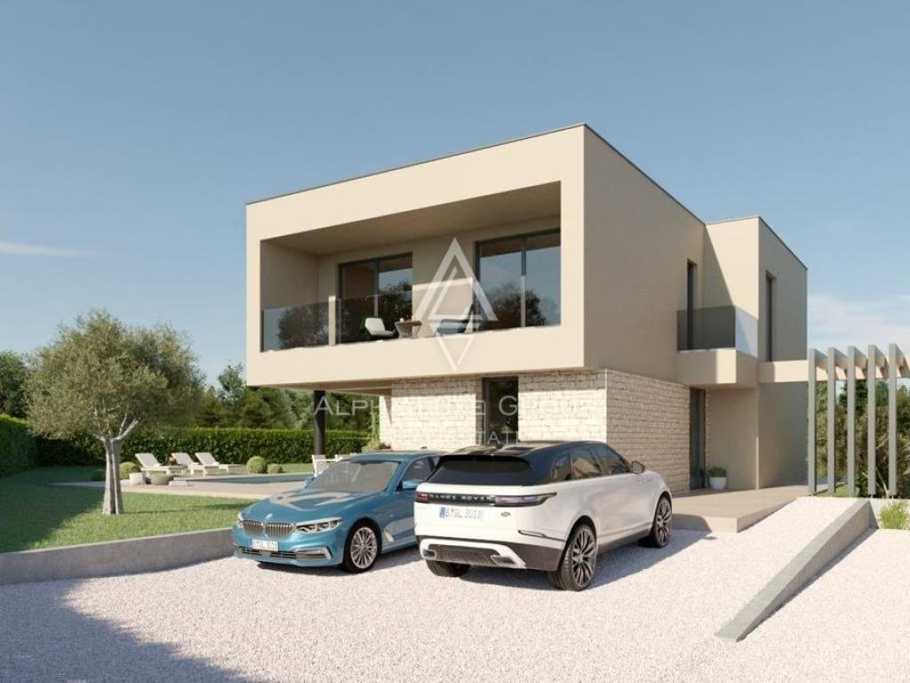 Unearth this stunning creation in the serene fringes of Poreč. This home, an epitome of modern design, sprawls over 220 m^2 on two distinctive floors. On entering, the ground floor offers a protected gateway leading to a spacious hallway. It opens to a harmoniously merged living room, kitchen, and dining area. Additional features on this floor include a sophisticated cloakroom, a guest toilet, a functional space, and a seasonal kitchen. Ascending to the first floor, you're introduced to a hallway directing you to four generous bedrooms. Each room boasts an ensuite bathroom and opens up to either a balcony or a radiant terrace. Enhancing the property's charm is a thoughtfully designed 480 m^2 garden, complete with a heated 4x9 m pool, lush greenery with irrigation, and an automated gate leading to parking for 2-3 cars. The home is finessed with PVC and aluminum joinery, chic ceramics, and is equipped for utmost security.
