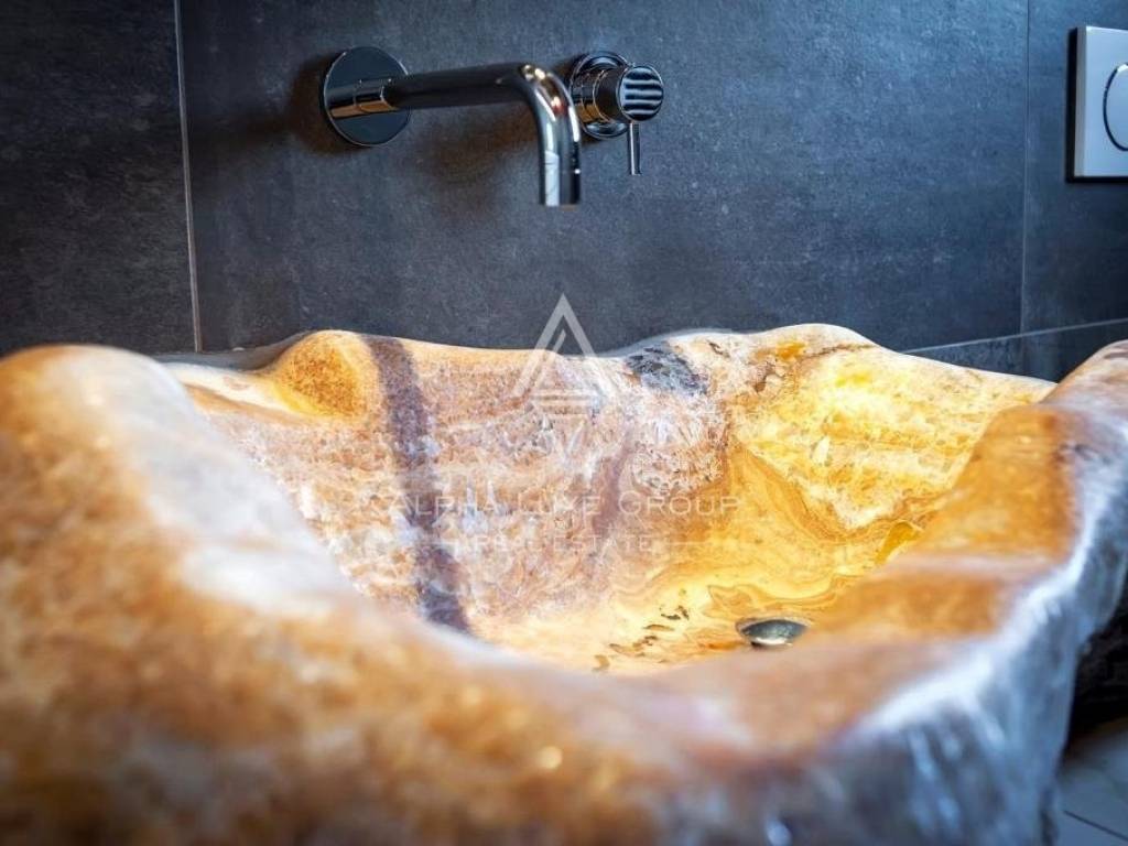 Bathrooms are equipped with "ONLY" retarders shower cabins, unique crystal-calcite sinks, and high-quality Catalano sanitary ware with Geberit Sigma cisterns. The living room features a thermal fireplace, central vacuum cleaning, and the house is serviced by a 300 l boiler plus a 400 l water storage unit for heating (Cordivari), with the option to add solar panels and a heat pump.