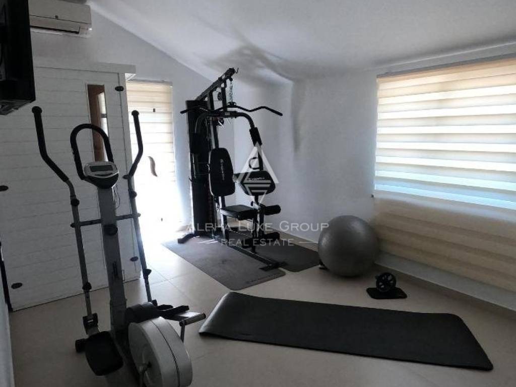 The upper floor houses 4 additional spacious units, each with an entrance hall, bathroom, sleeping area, and a small living area. One unit includes a private gym.