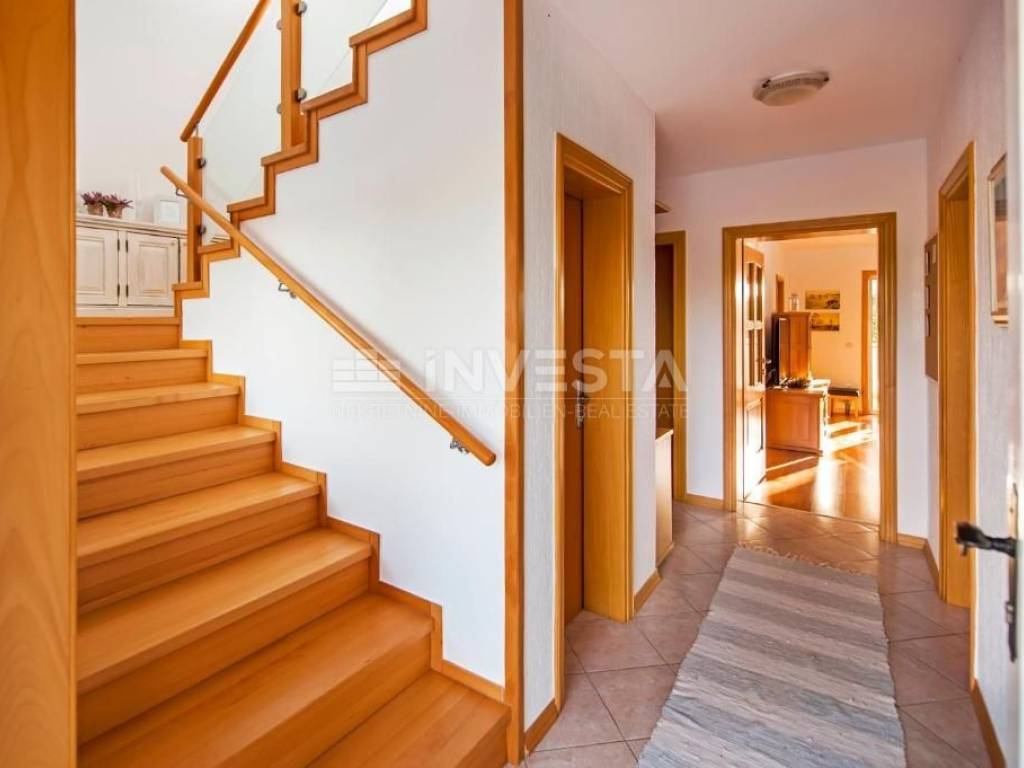 The ground floor greets you with a warm entrance hall, a practical storage room and a small but useful guest toilet. There is also a bathroom, one bedroom, and a spacious kitchen with a dining area perfect for family gatherings. The bright living room opens onto a large loggia — an ideal spot for morning coffee or evening relaxation.