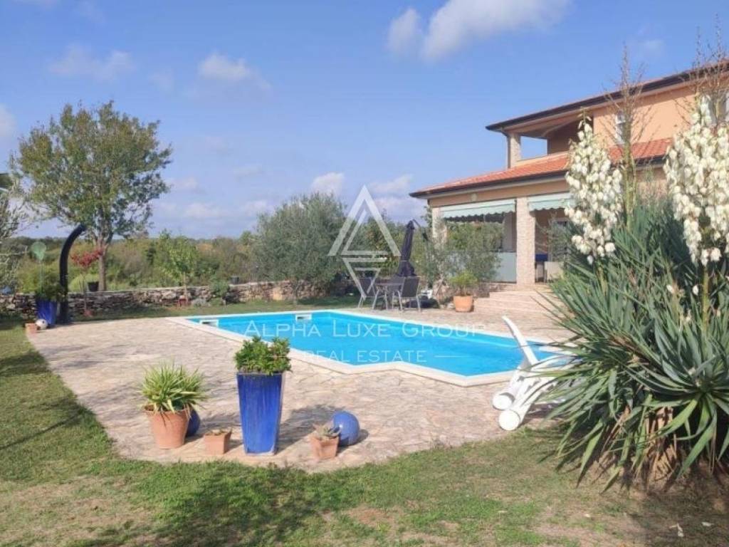 Located in the peaceful village of Galižana near Vodnjan, this stunning villa offers distant sea views and a serene lifestyle just 4.5 km from the nearest beaches. Constructed in 2013, the property boasts a total living area of 242 m² and is set on a 1,349 m² plot, providing ample space for relaxation and recreation.