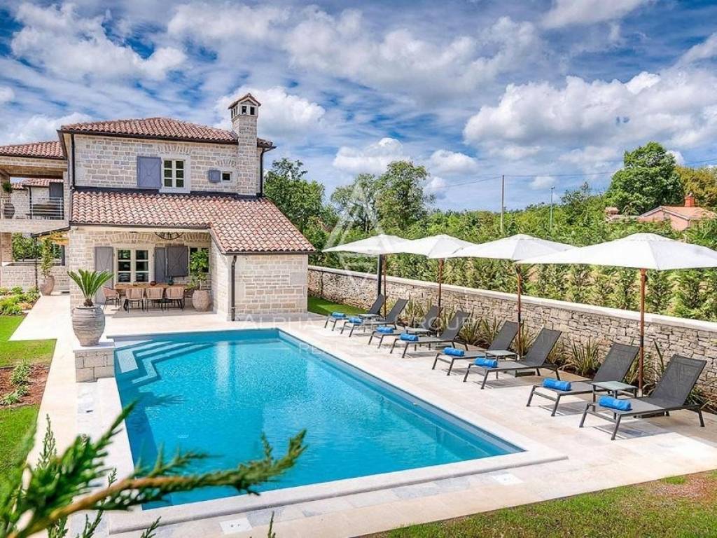 Discover this elegant villa for sale in Ladrovici, Kanfanar, offering 297 m² of beautifully designed living space and a private garden of 824 m². Nestled in a charming complex of four villas, each property ensures privacy and comfort with its own landscaped garden and swimming pool.