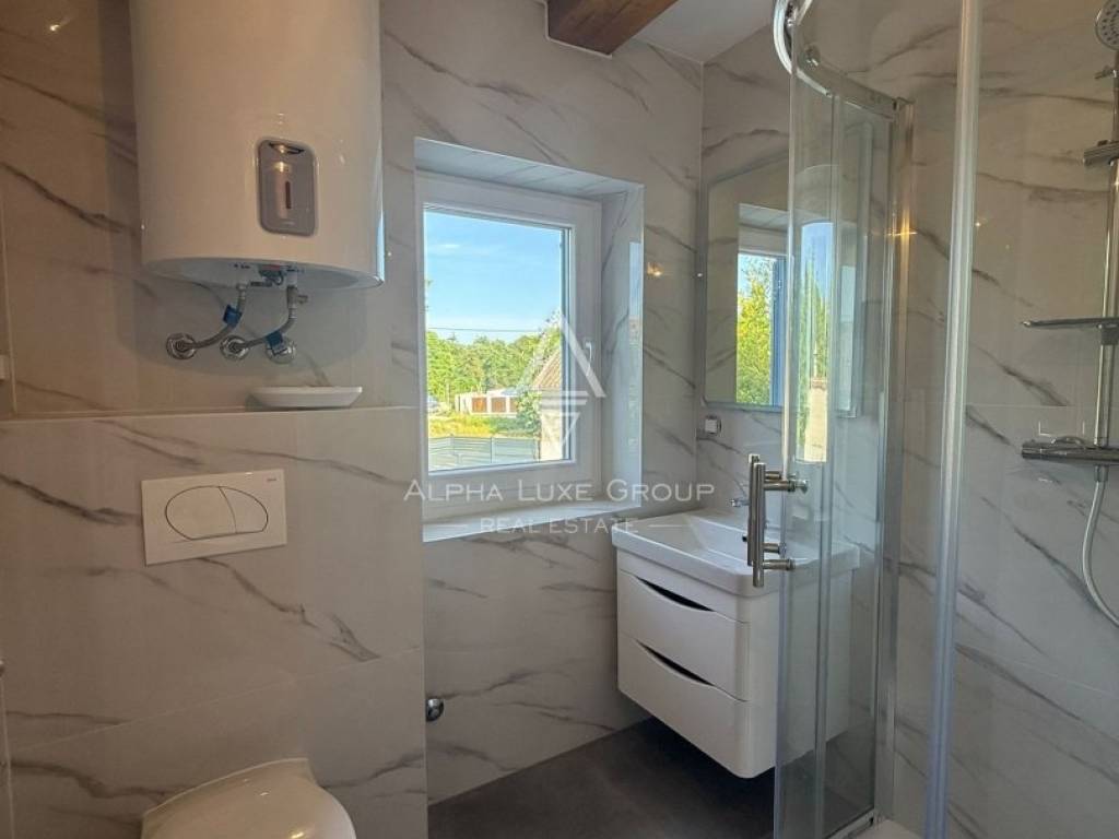 Located in a peaceful cul-de-sac in the traditional Istrian village of Juršići, this newly constructed stone terraced house blends timeless character with modern comfort. Spread over three levels and offering 140 m² of living space, the home features a welcoming living room, kitchen with dining area, and a guest toilet on the ground floor. The open layout leads directly to a sun-soaked terrace and a private 15 m² swimming pool, perfect for outdoor leisure and relaxation.
