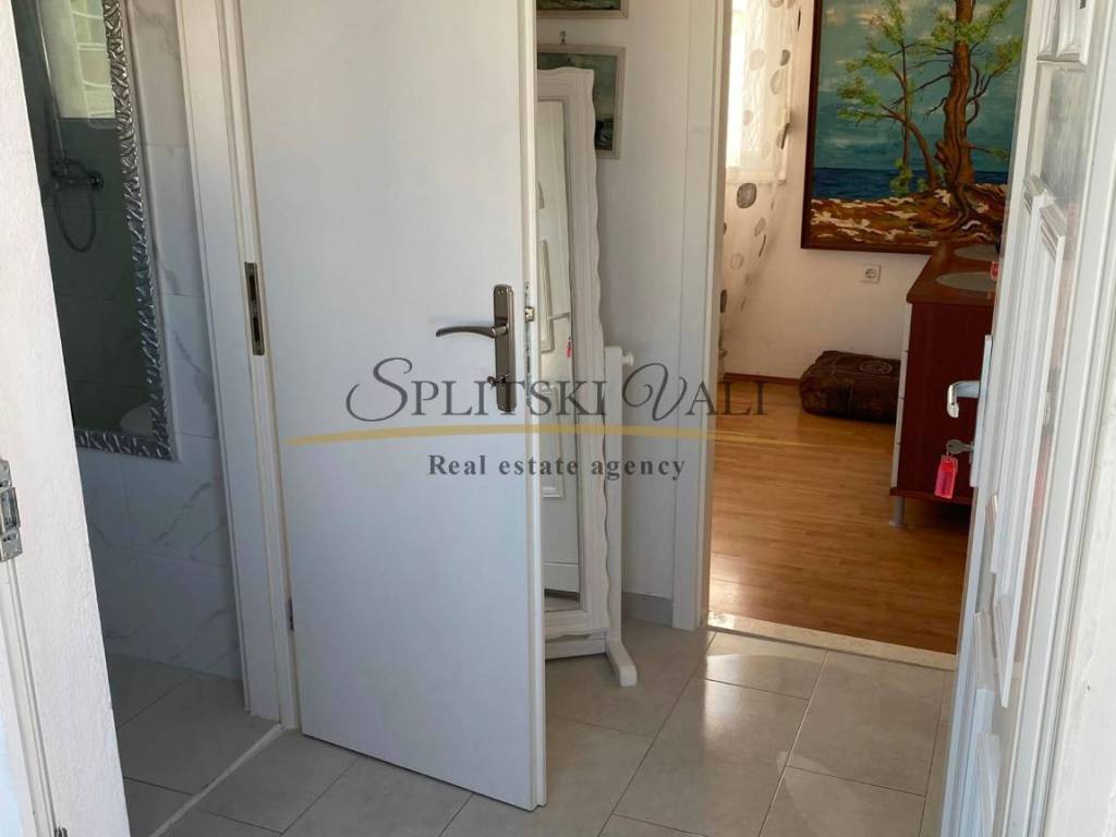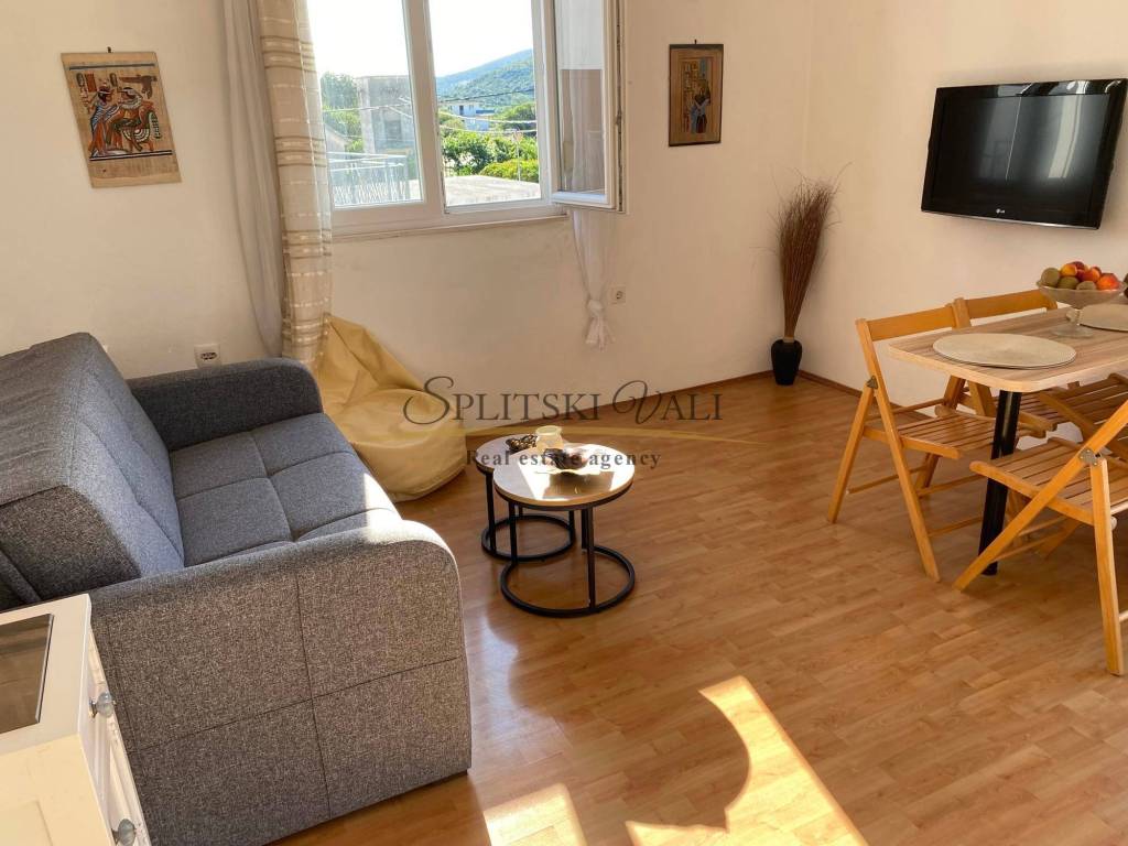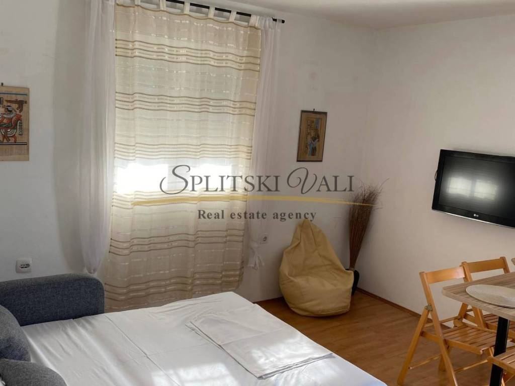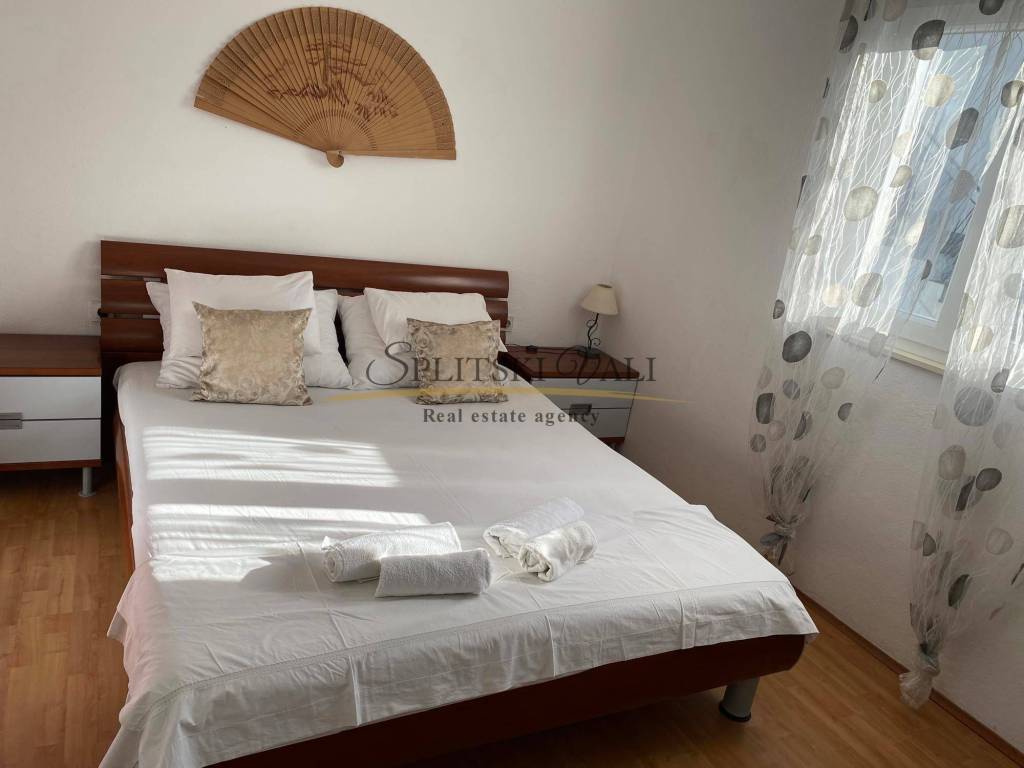 Dugoročno se iznajmljuje stan radnicima s važećim ugovorom o radu. Nalazi se u samom centru Marine, u blizini dvaju supermarketa, Općine, pazara i ribarnice, treći red od mora. Stan je klimatiziran i sastoji se od jedne spavaće sobe, dnevnog boravka s kaučem na razvlačenje, kuhinje s blagovaonicom te velikog balkona. Na raspolaganju je i parkirno mjesto, a stan ima zaseban ulaz i vlastito stubište, smješten je na prvom katu. Režije uključuju struju, vodu, kabelsku televiziju, odvoz smeća i internet, a plaćaju se fiksno 100 eura mjesečno. Obavezan je polog u visini jedne stanarine, koji se vraća nakon pregleda stana pri odlasku.