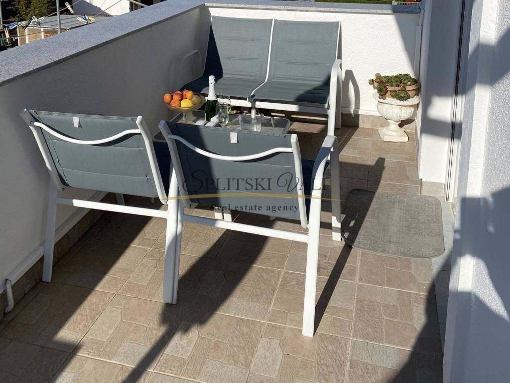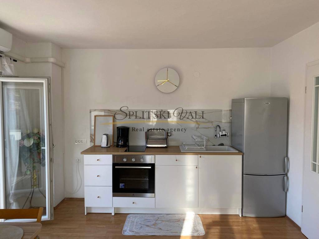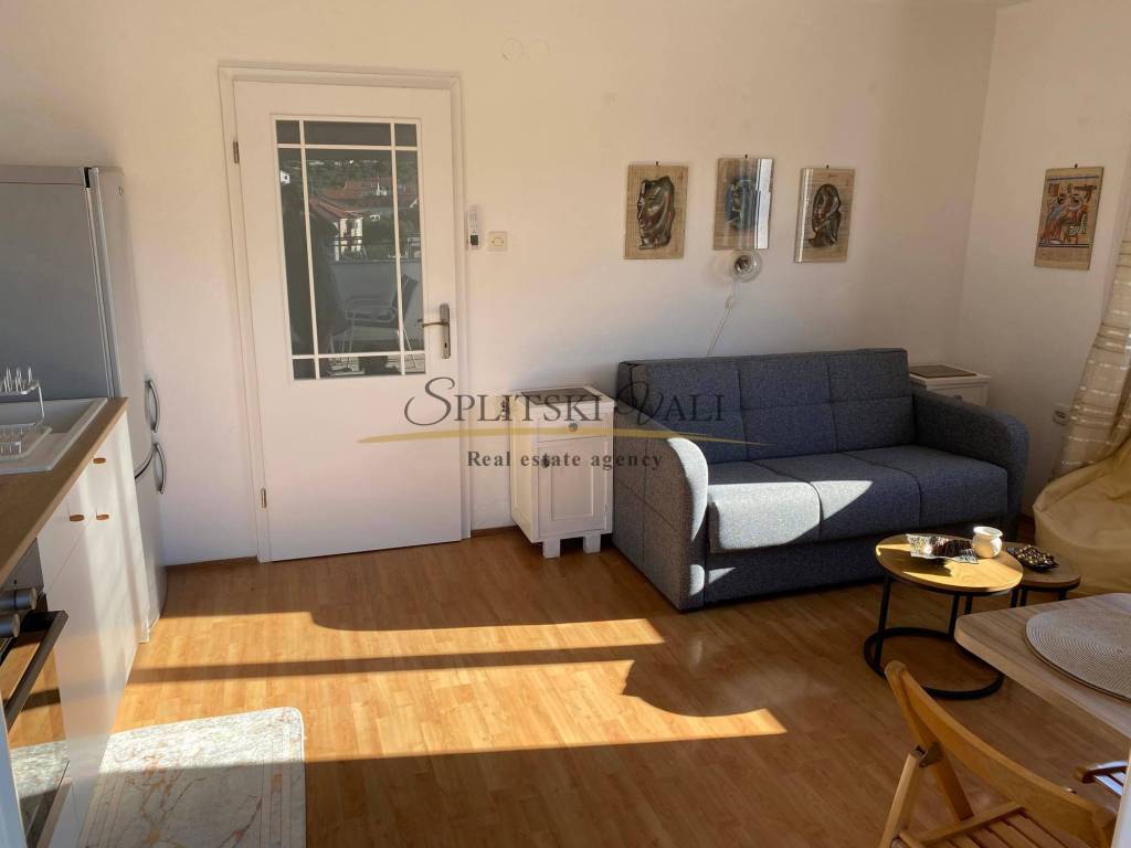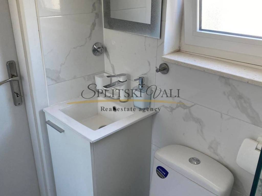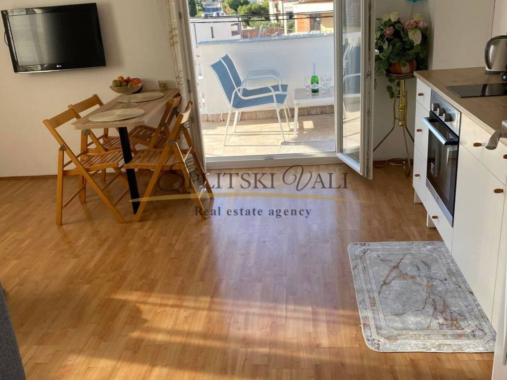 Dugoročno se iznajmljuje stan radnicima s važećim ugovorom o radu. Nalazi se u samom centru Marine, u blizini dvaju supermarketa, Općine, pazara i ribarnice, treći red od mora. Stan je klimatiziran i sastoji se od jedne spavaće sobe, dnevnog boravka s kaučem na razvlačenje, kuhinje s blagovaonicom te velikog balkona. Na raspolaganju je i parkirno mjesto, a stan ima zaseban ulaz i vlastito stubište, smješten je na prvom katu. Režije uključuju struju, vodu, kabelsku televiziju, odvoz smeća i internet, a plaćaju se fiksno 100 eura mjesečno. Obavezan je polog u visini jedne stanarine, koji se vraća nakon pregleda stana pri odlasku.